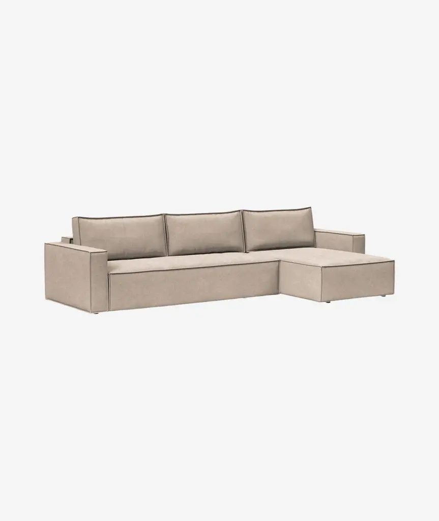 The size of the Newilla with lounger is directly proportional to the value. It has a large storage space under the sofa seat as well as under the lounger and is the perfect place for entertaining or relaxing with family and friends. The sofa bed has a detachable cover which gives the ability to wash the cover to refresh the sofa. You are also able to renew the cover at the end of its life cycle. The modular lounger can be placed on either the left or right side.