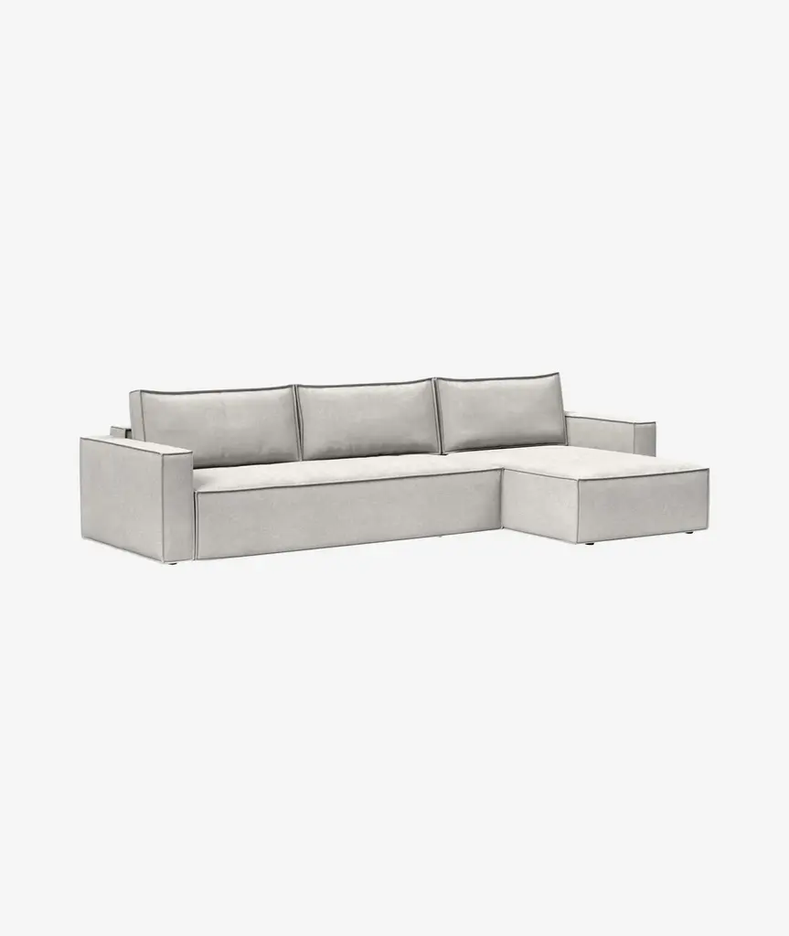 The size of the Newilla with lounger is directly proportional to the value. It has a large storage space under the sofa seat as well as under the lounger and is the perfect place for entertaining or relaxing with family and friends. The sofa bed has a detachable cover which gives the ability to wash the cover to refresh the sofa. You are also able to renew the cover at the end of its life cycle. The modular lounger can be placed on either the left or right side.