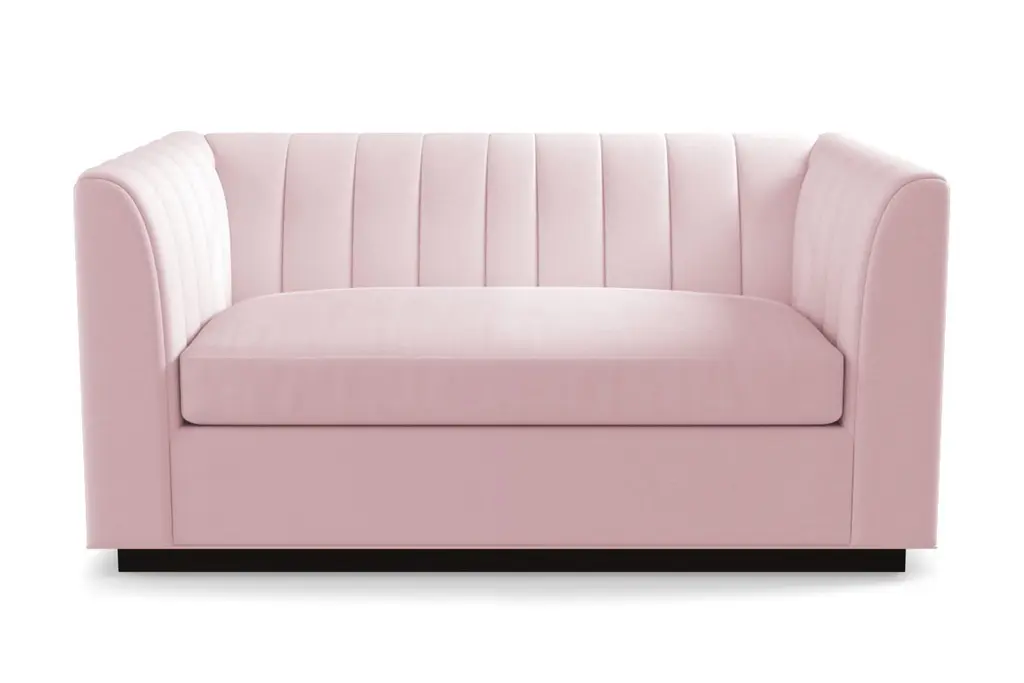 Combine practical design with pretty decor when you choose the Nora apartment-size sleeper sofa bed from Kyle Schuneman. This elegant convertible couch features sophisticated art deco styling. You'll love the tufted-channel high back and arms that create a cozy place to kick back. Use the full-size hide-a-bed to turn your living room into a guestroom in a snap.