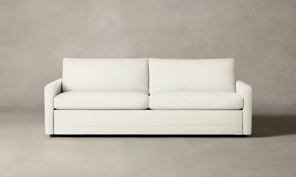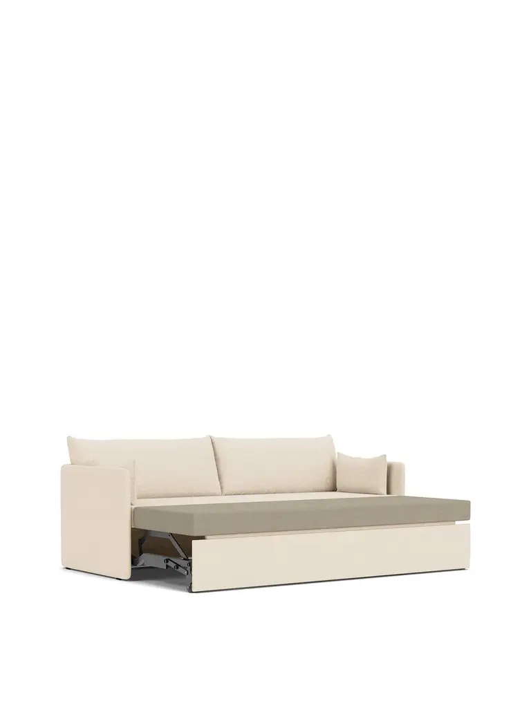 Versatility is at the heart of the Offset Sofa Bed, which has the ability to transition from an elegant sofa to a comfortable bed. Ideal for accommodating guests or maximizing space in multi-purpose rooms, it effortlessly adapts to changing needs. Balancing support with softness, the design embodies simplicity with its clean, understated silhouette, designed from a set of paradoxes: substantial yet delicate in appearance and architectural yet inviting and relaxed.