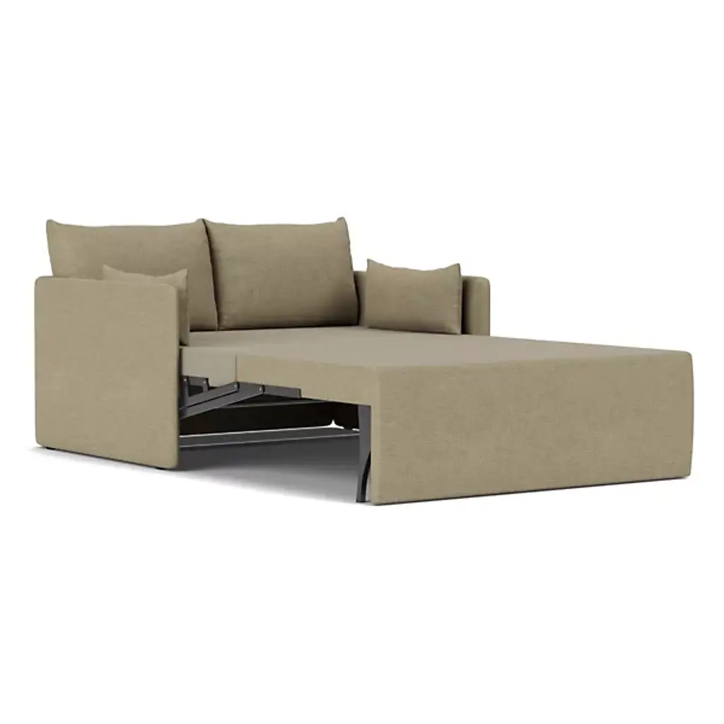 The Offset Sofa Bed from Audo Copenhagen features an understated and impactful design. Designed by Norm Architects, this sofa bed focuses on its design balance, creating an architectural, delicate, and inviting piece. Narrow armrests contrast with the thick, generous seat and are supported by four sturdy metal legs. This product combines minimalist art-inspired clean lines with a soft, welcoming touch. Comfort is maximized while also making a subtle yet powerful statement in any space.
