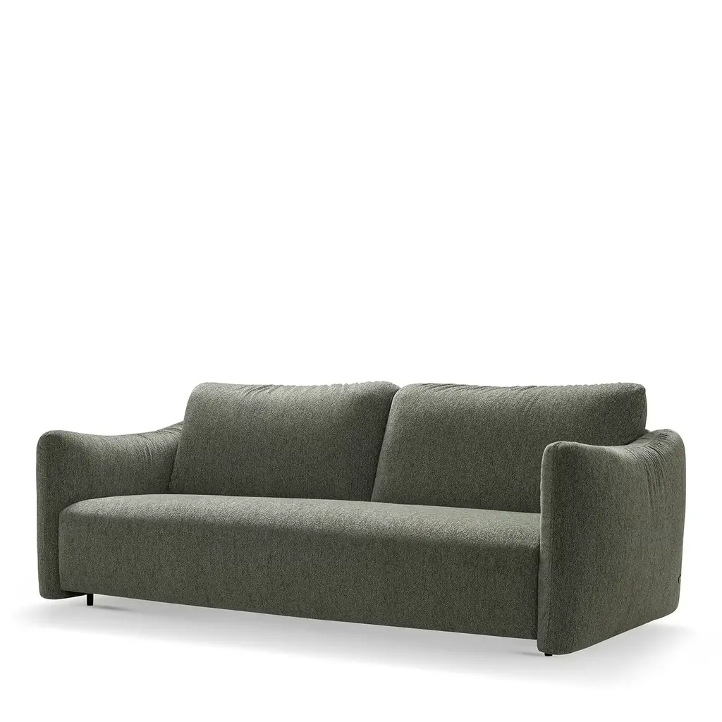 Clean lines trace the harmonious profiles of this sofa bed, its understated elegance counterbalanced by extraordinary versatility. Offered in a fresh and sophisticated green fabric upholstery, it features wenge-stained feet and generous multi-density expanded polyurethane padding for long-lasting comfort. Once laid out, the pocket-sprung mattress on a slatted bedframe extends in length to reach up to 226 cm. Fully disassemblable. Please contact the concierge service for further options.