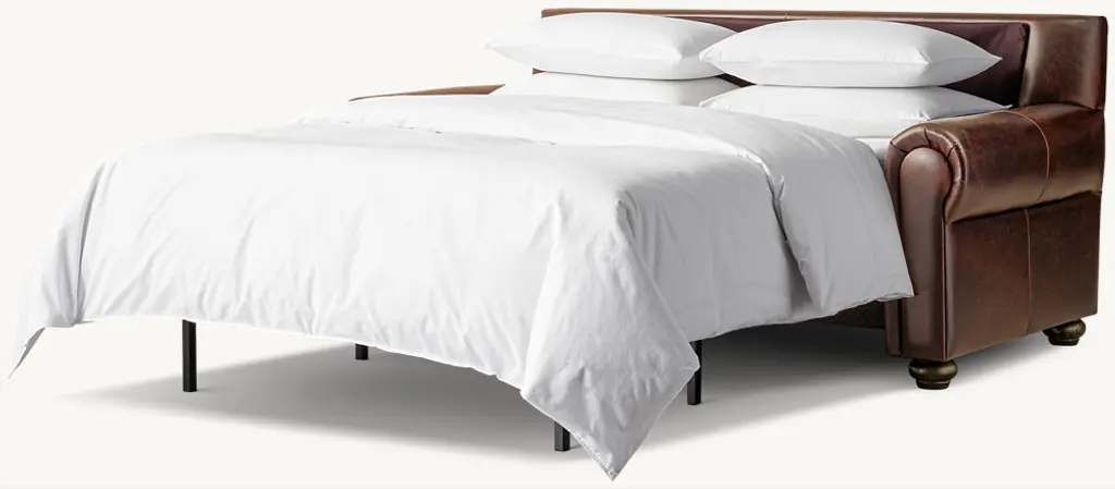 Luxurious comfort and classic details lend Lancaster its timeless character. Turned hardwood feet and rolled arms nod to tradition, while its deep profile, clean lines and generously cushioned seat and back bring relaxed refinement. The plush sofa seamlessly disguises a patented, superior Tiffany 24/7™ Sleep System. Equipped with a proprietary pullout mechanism and a premium gel mattress, our Comfort Sleeper® sofa converts effortlessly to a luxe bed without ever sacrificing style. Handcrafted in the USA. ALSO AVAILABLE IN FABRIC SHOP THE ENTIRE COLLECTION