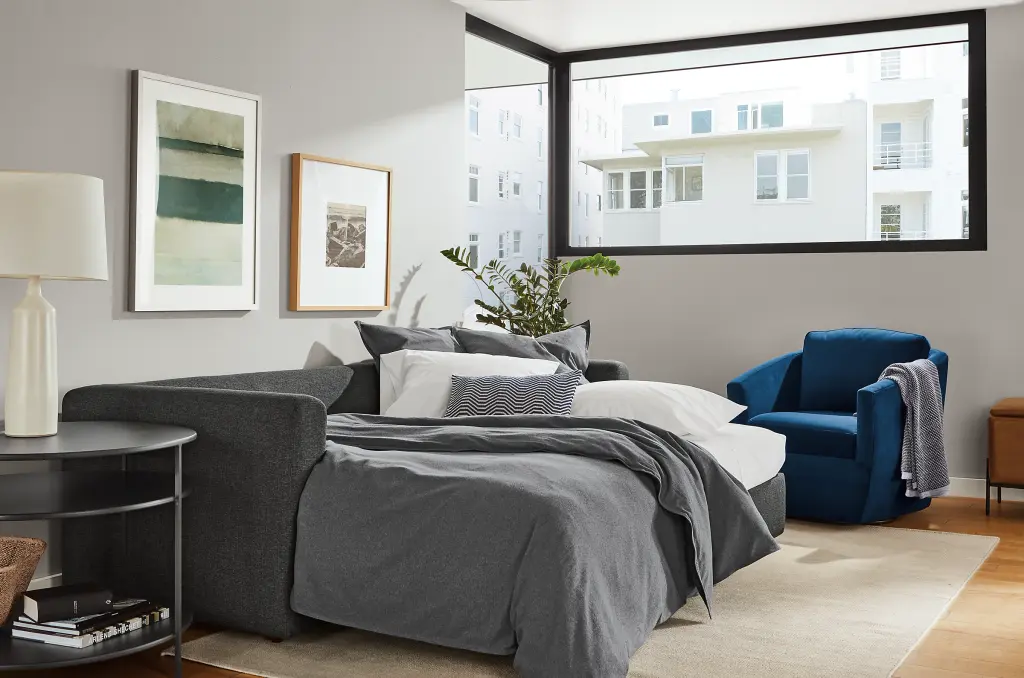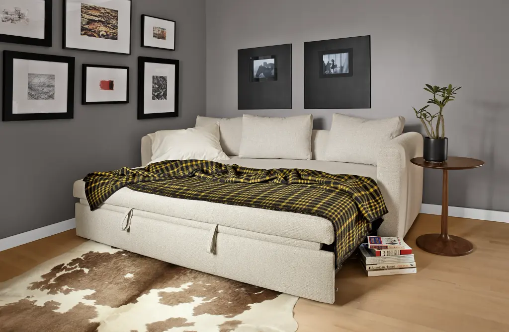The Oxford Pop-up Platform sleeper sofa has clean modern styling you’ll love in any room, plus you can use it as a sofa, two twin beds, one queen bed or an oversized chaise lounge. Simply roll out the sofa’s front rail, and a counterbalanced mechanism lets you easily lift up the sleep surface.