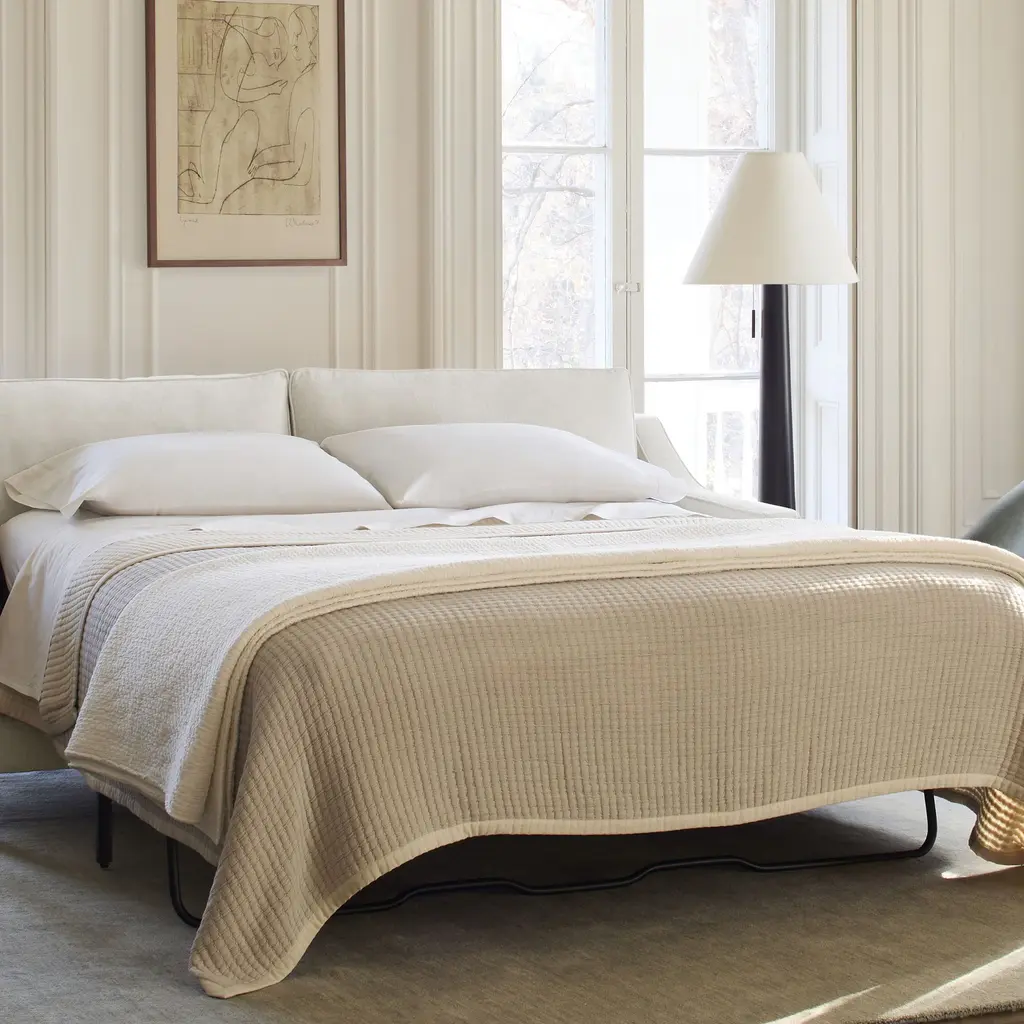 Classic sofa by day, spacious sleeper by night. The contouring, memory foam-infused mattress. Hand-built frames with hand-finished upholstery. Seats two—with room to spare.