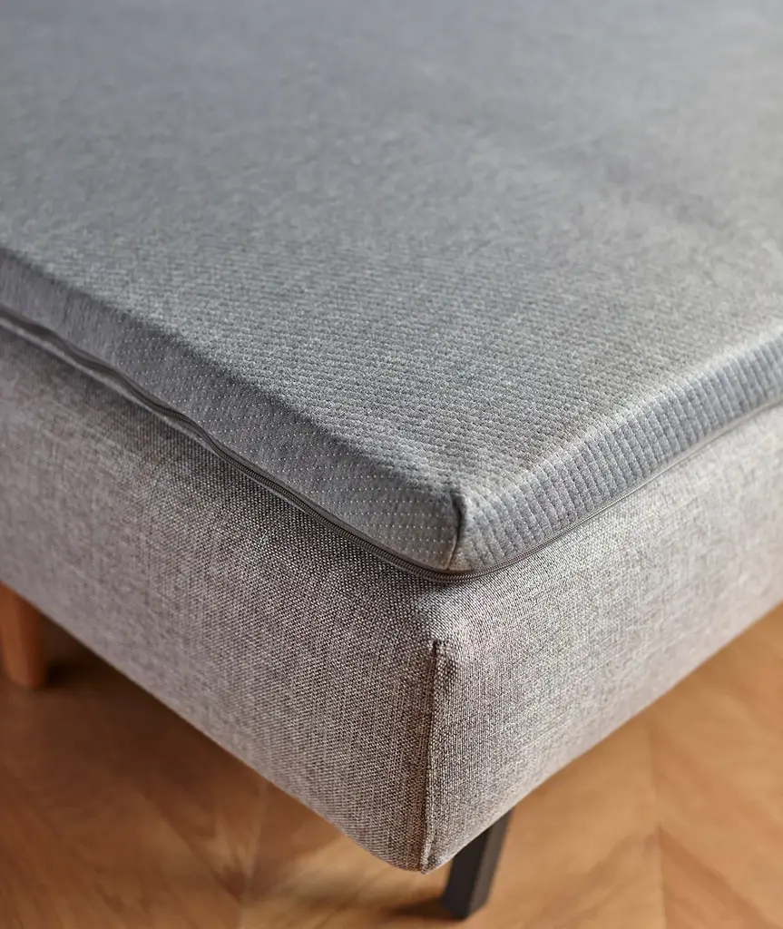 A 2.5"durable and reversible top mattress with a core of 55 lbs polyether foam that provides an even and supportive resting surface on all adjustable sofa beds. Cover is 100% polyester which is breathable, removable and machine-washable at hot temperature. The mattress topper comes with a wrap for storage when not in use. The wrap helps minimize the volume of the topper for better storage. Pair with any Innovation Living sleeper sofa for extra sleeping comfort.