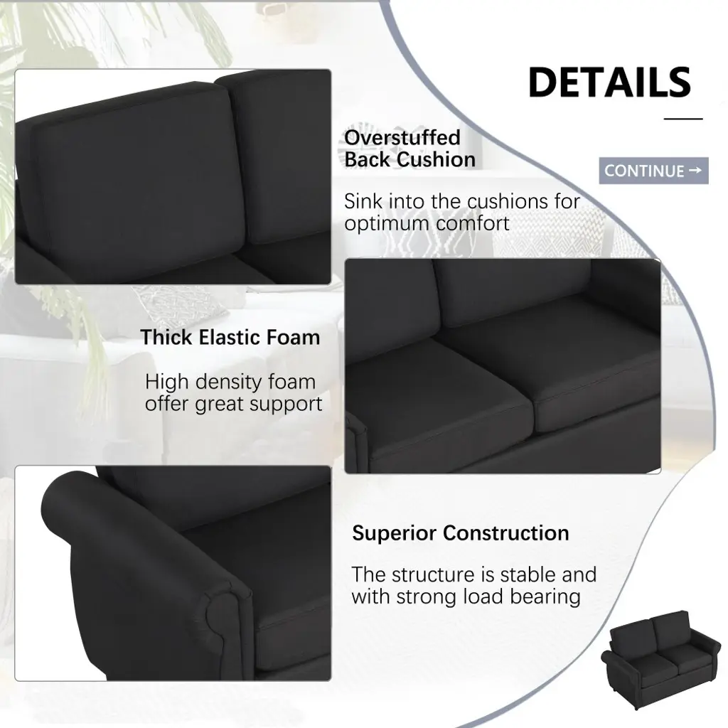 Pull Out Sofa Bed Loveseat Sleeper With Twin Size Memory Mattress - Black