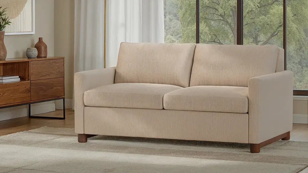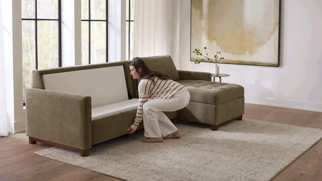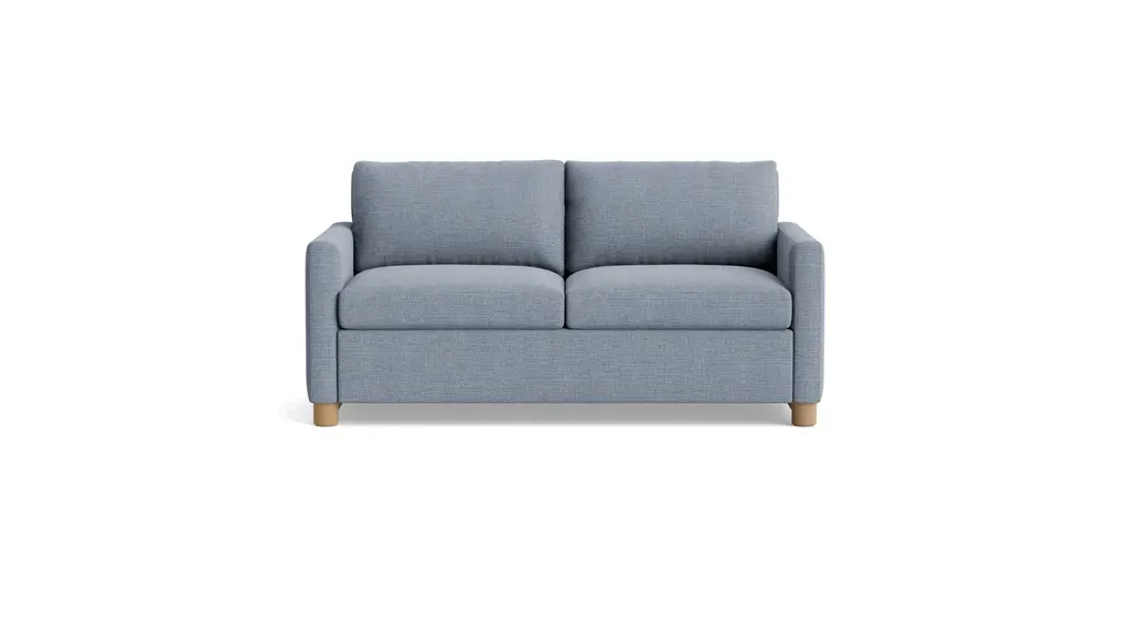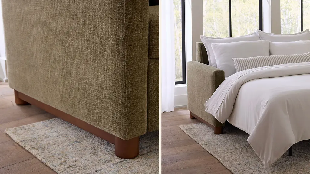 DESIGN Made for dreaming, the Reve Sofa Bed brings timeless style and versatility to any space. Designed with a refined silhouette, solid wood rail leg, and tall back height, this sleeper sofa delivers a supportive sit for everyday lounging. When guests arrive, it quickly converts into a bed with our easy-open mechanism. At the heart of the Reve is a 5" premium, high-density mattress without uncomfortable springs or bars - ensuring quality sleep, night after night. Perfect for small spaces, this multi-functional sofa creates an instant guest room without compromising on design. Handcrafted in the USA, the Reve Sofa Bed can be customized in your choice of 125 fabrics and leathers and is protected by our limited lifetime warranty. Pair the Reve Sleeper with luxe Italian percale sheets for a seamless fit. FEATURES Solid Foundation: Our frames are constructed from precision-cut, FSC-certified engineered wood for unmatched strength and stability, featuring reinforced, interlocking joinery for added durability. Customizable Cushion Options: Choose from foam & fiber or down alternative cushions. Foam & fiber cushions are made from high-quality, high-resiliency CertiPUR-US® foam wrapped in premium fiber, giving you a supportive, comfortable sit and a sleek look that's low maintenance. Down alternative cushions feature a back cushion that's filled with 100% premium fiber and a seat cushion with a high-quality, high-resiliency CertiPUR-US® foam core wrapped in down-alternative fiber. Down alternative cushions give you sink-in comfort with a supportive sit & a relaxed look. Regular fluffing keeps your piece looking perfect. CertiPur-US® foam is held to the highest standards of product safety and durability, so you can rest easy. Supportive Webbing Suspension: Designed to maximize comfort, our premium webbing system provides a resilient foundation. Next-Level Sleeping Comfort: No springs or bars to keep you up at night - just a 5" premium, high-density mattress crafted from 3 layers of high-resiliency foam for an amazing night of sleep. Easy-Open Mechanism: For an effortless transition from sofa to guest space. No clearance needed, so the Reve can sit flush with a wall. Customizable Upholstery: Choose from a vast selection of durable premium and performance fabrics and genuine Italian leather to personalize your Reve Sofa Bed's look.