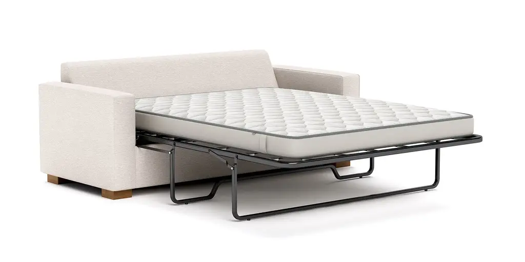 Rio Sofa Bed's classic silhouette is wrapped in plush cushioning that pairs timeless appeal with enveloping comfort. A stowaway mattress makes hosting a breeze. The frame, cushions and pillows are made from natural materials like latex and wool. Our mattress is made from CertiPUR-US® polyurethane foam with protective layers of wool and a certified-organic cotton cover. This blended approach for materials delivers body-contouring support for pressure-free, luxurious comfort.