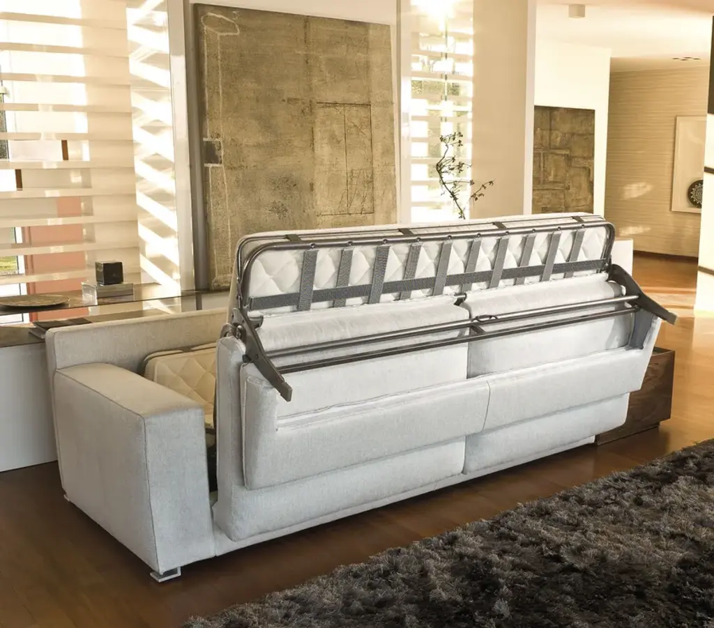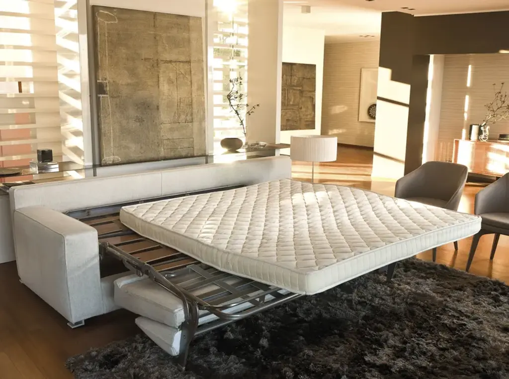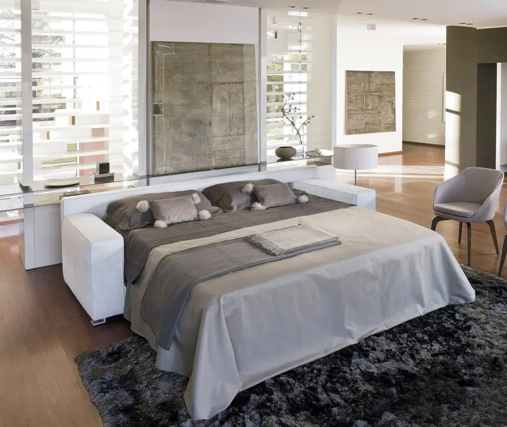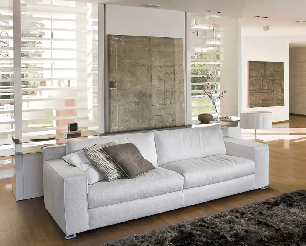 Roger is a highly versatile seating system with removable covers. It offers a wide range of compositions and unparalleled comfort thanks to the support pads set behind the back cushions. The linear design features matching or tone-on tone profile that underscores the fabric cover. Roger, with completely removable cover, also comes as an easy-to-open sofa bed with special orthopaedic slats that provide the same comfort as a real bed.