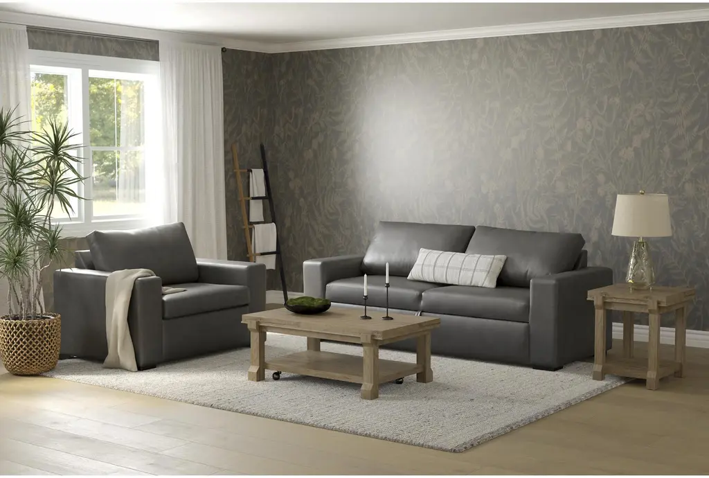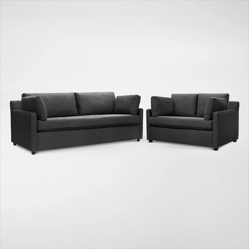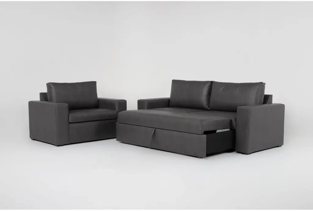Sebastian Slate Faux Leather 2 Piece Convertible Futon Sleeper Sofa Bed & Chair