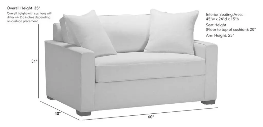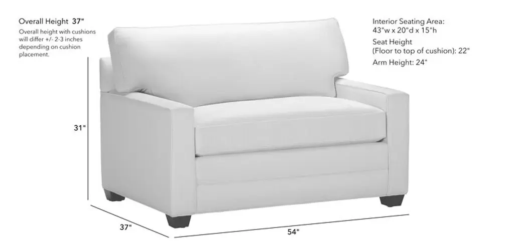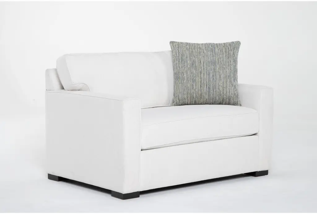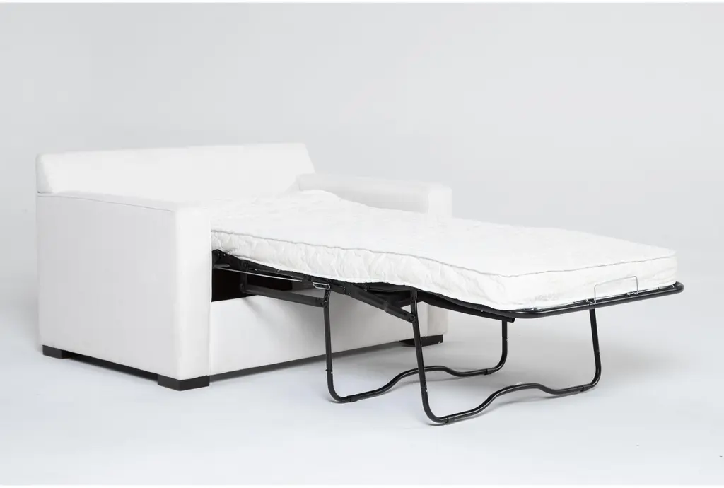 Silas Iv White Beige 54" Fabric Memory Foam Twin Sleeper Sofa Bed | Arms | Solid