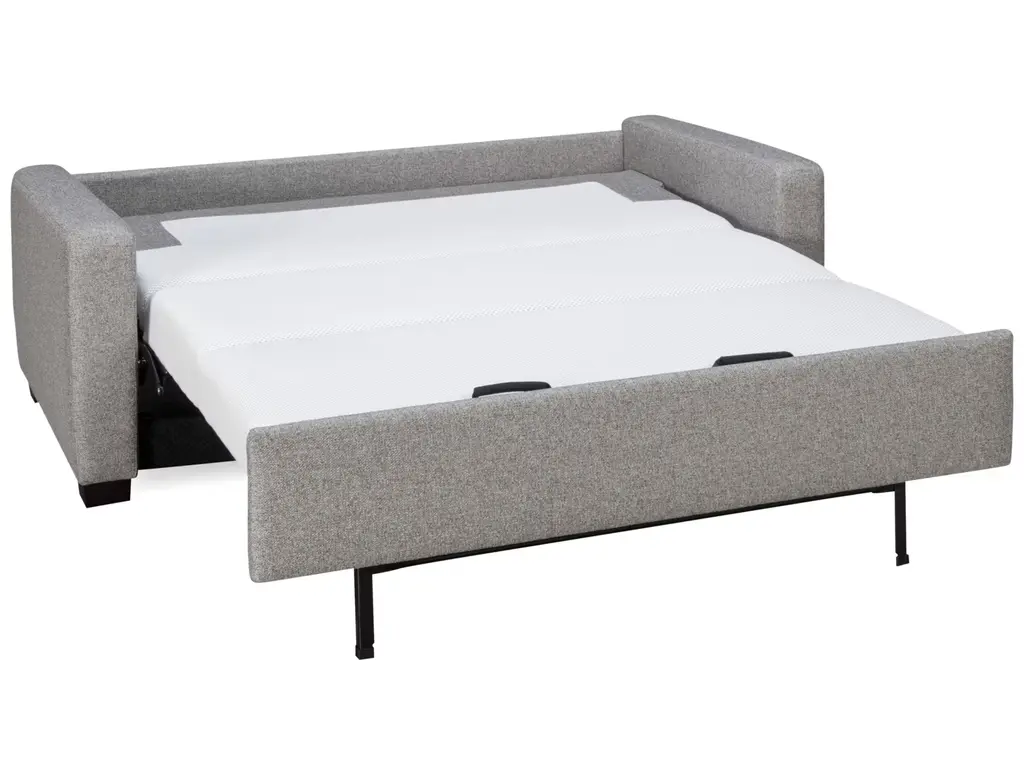 Accommodate extra guests with ease with the Lyons Queen Sleeper Sofa from American Leather. This traditional-style sleep sofa features narrow track arms for a clean-lined sleek look from every angle, along with loose back and seat cushions. Guests can sleep in ultimate comfort on the gel mattress. Block feet in an ebony finish complete the look. Custom-order fabrics are available.