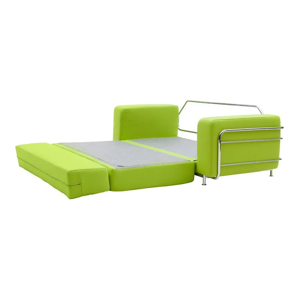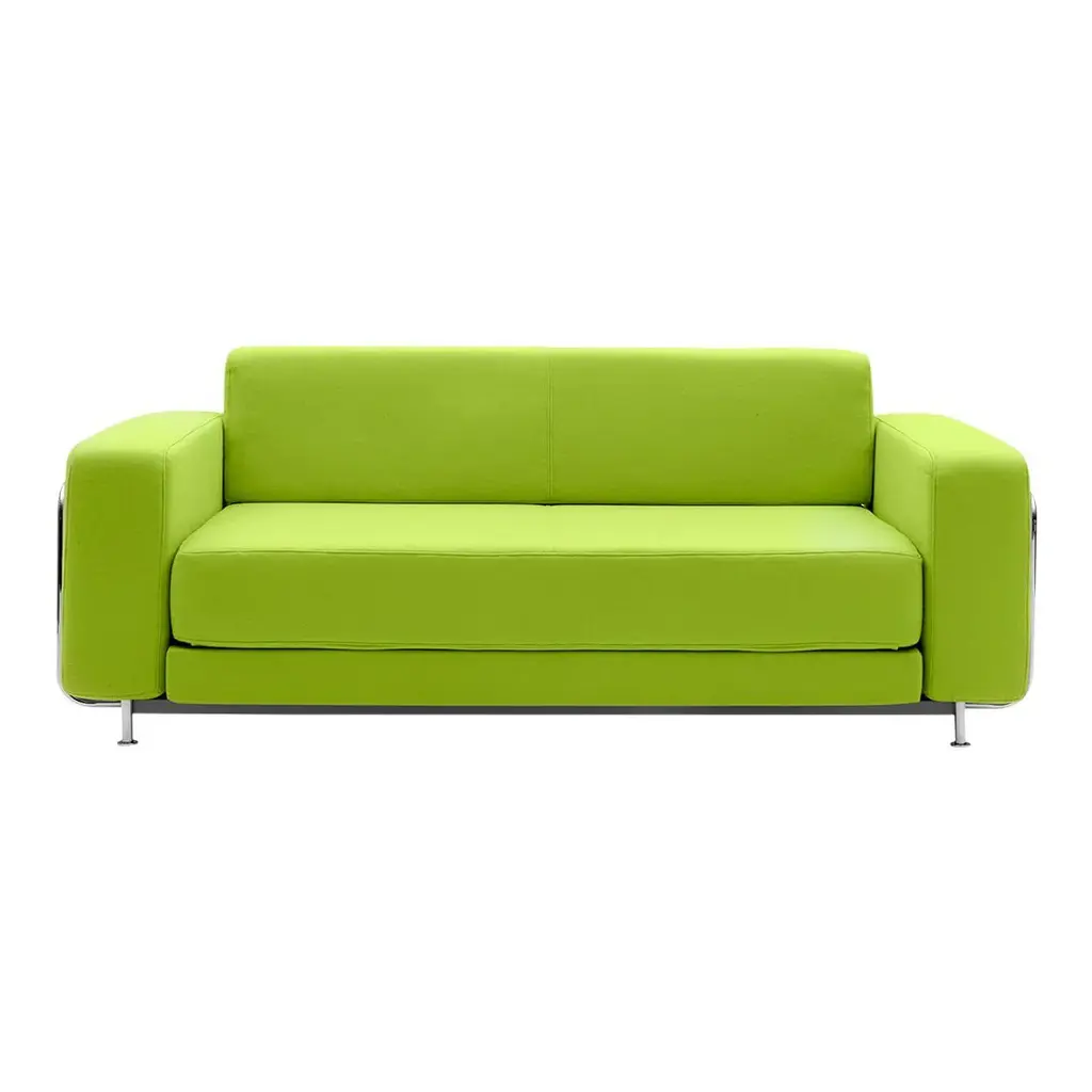 SNUG, MINIMALISTIC ELEGANCE. The SILVER set lets you create a compact sitting or sleeping area and is perfect for the small living room. Choose between the chair or the sofa in a number of colours and fabrics. The steel frame comes lacquered in white or full gloss chromium steel.