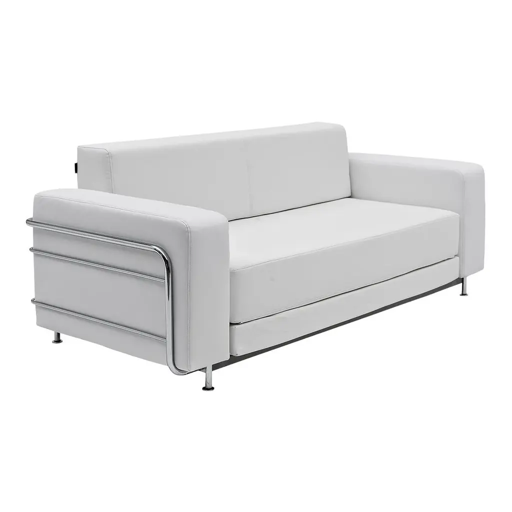SNUG, MINIMALISTIC ELEGANCE. The SILVER set lets you create a compact sitting or sleeping area and is perfect for the small living room. Choose between the chair or the sofa in a number of colours and fabrics. The steel frame comes lacquered in white or full gloss chromium steel.