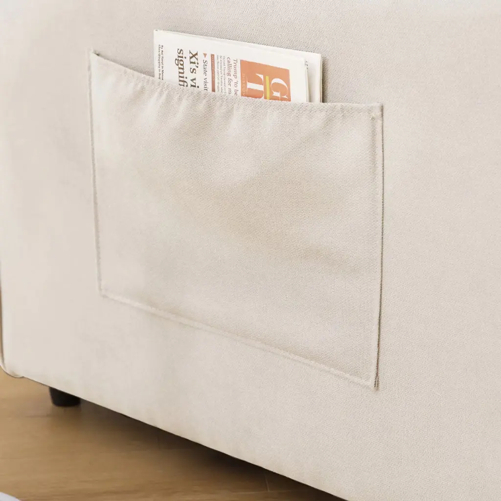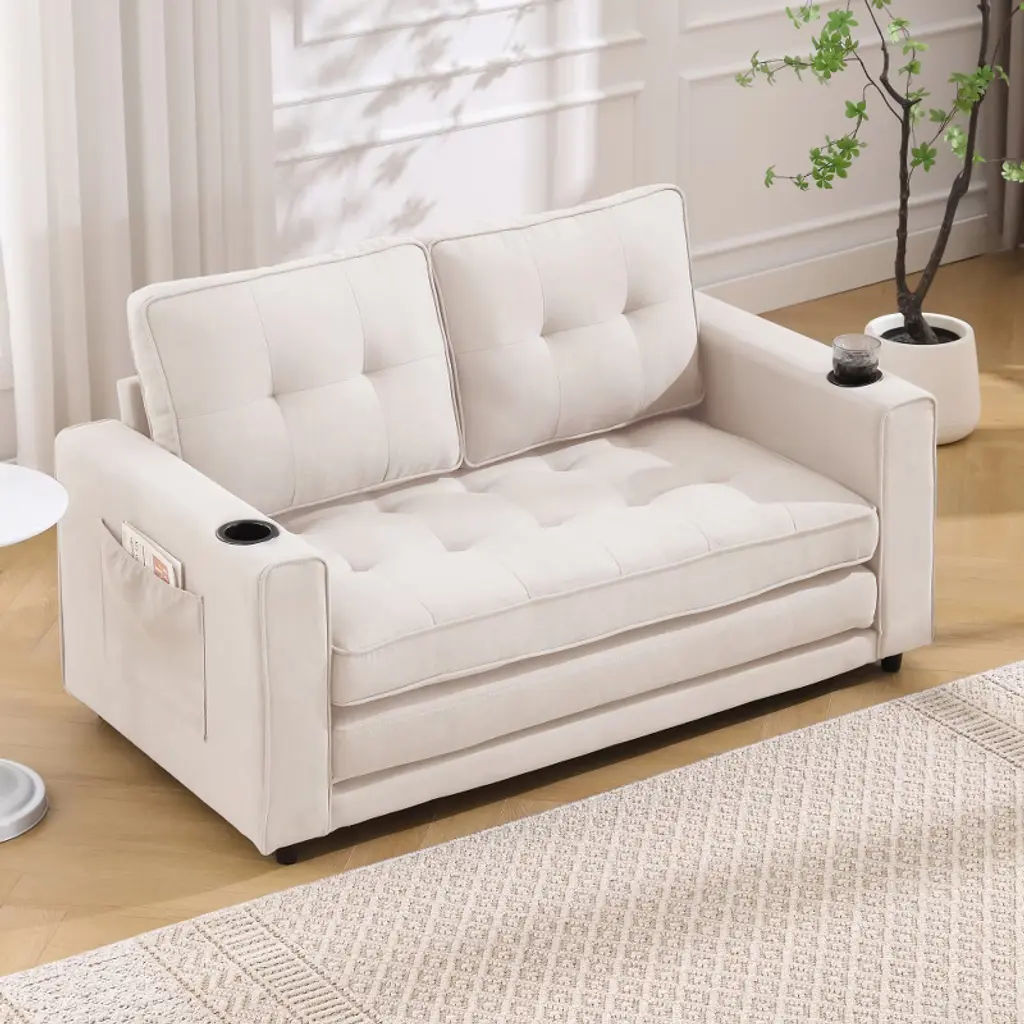 You will always figure out the best place to accommodate it! *Living Room *Family Cinema Room *Children's Room *Basement Modern Tufted Design The backrest and cushion of this pull out couch designed with modern button tufted, more stylish and beautiful as your home decoration. Side Pocket for Extra Storage The side pockets on the armrest allow you to easily reach and grab whatever you need. Allows you to place TV remote control, magazines, books, mobile phones or tablets, which provides more convenience and helps keep your living room clean and tidy. Cup holder Design The sofa bed has 2 cup holders, make a cup of coffee, turn on the TV and share leisure time with family or friend.