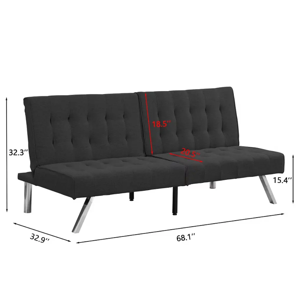 Skran Futon Sofa Bed With Wood Frame,stainless Leg For Small Space Living Room, Bedroom Office,black