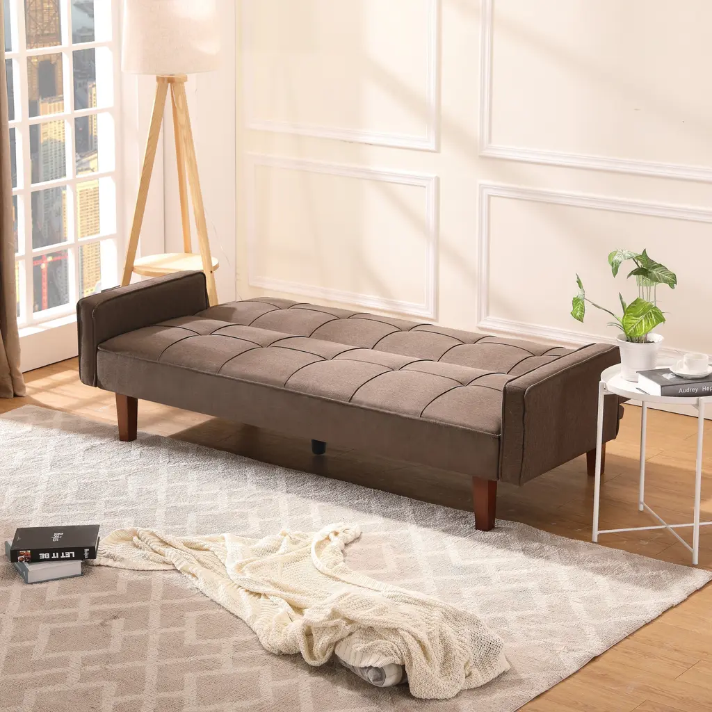 Looking for a stylish and functional sofa bed that won't take up too much space in your home? Look no further than our Sofa Bed! Made with a solid eucalyptus wood frame and durable white poplar legs, this sofa set can support up to 500ibs. Its fine linen material, simple contemporary style, and classic color make it a perfect fit for any decor theme. Assembly is a breeze, with all pieces sliding together in just 20 minutes. Upgrade your living space with our Sofa Bed today!Features: