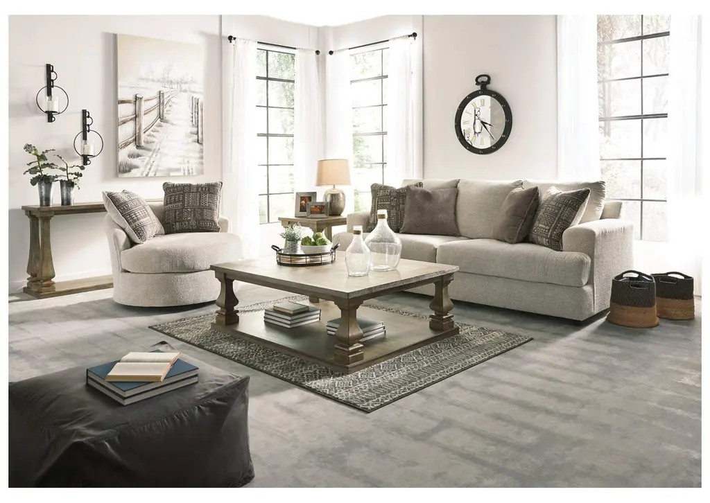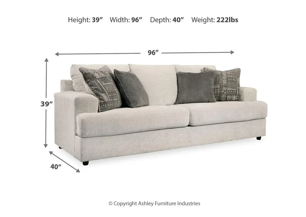 Flaunting a trendsetting silhouette, the Soletren sofa sleeper puts the contemporary in your contemporary home. Its “three over two” profile eliminates the center seat cushion, giving you elongated plushness and deep seating. And the chunky chenille fabric satisfies your need for a piece that feels as good as it looks. A pull-out queen mattress in quality memory foam comfortably accommodates overnight guests. Weight 231.000 lbs. (103.95kgs.)