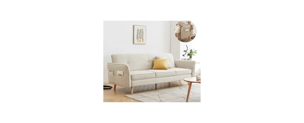 The multi-functional sofa in the living room can help you save more space and money! From sitting and reading a book, leaning on a book to taking a nap in the afternoon, the sofa can be transformed into a bed, which can be switched freely, and the armrests can also be folded, making it comfortable to lean on and pillow , The outer storage pocket can be used for you to hold magazines and newspapers at any time, just like having two extra small side tables! The backrest can be adjusted in three positions,2.27m in length, easy to place in a small apartment Living room space is too small, not enough to play? Covering an area of only 1.8 square meters, the small living room can also be arranged skillfully.ON is a sofa, OFF is a bed The backrest can be adjusted in three positions, and the three states of sitting, lying and sleeping can be freely switched to unlock different home comforts.Adjustable armrests are comfortable for leaning and sleeping Three-speed adjustable, reliable and pillowable, flexible usage, and improve the happiness index of lying on the sofa.56cm spacious sitting depth and diverse sitting postures It just supports above the knee, sitting cross-legged or lying lazily on the sofa, the back will not hang in the air, and you can sit and lie down freely.Beech legs Seat cushion and armrest - 30D sponge + cotton spray. Latex type - latex thickness 3cm. 1 Polyester fabric, complete disassembly and wash design. 2 Technical fabric fabric, design without dismantling and washing. Adjustable armrest
