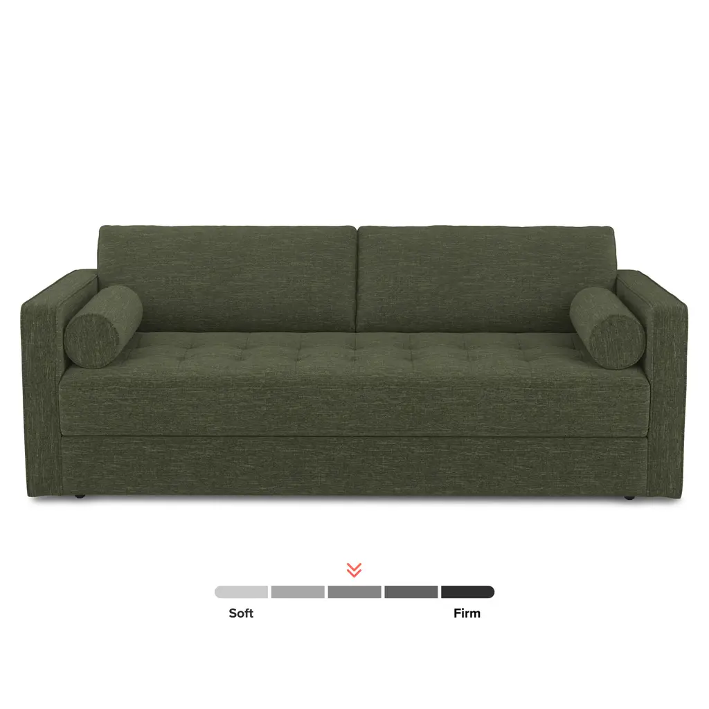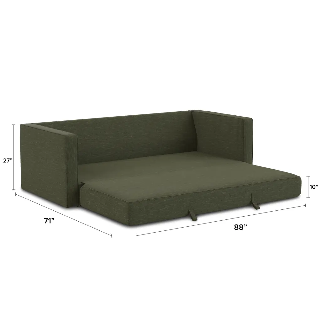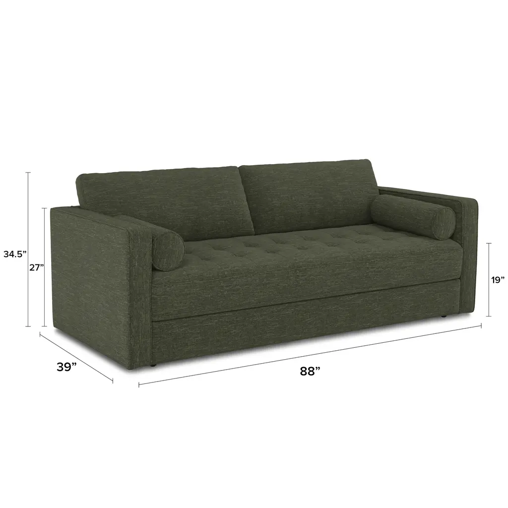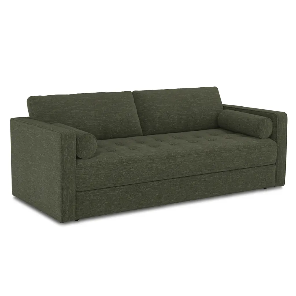 Ever looked at our best-selling Sven and thought “Huh, this thing looks so comfy, I wish they made a Sofa Bed version”. Well, dream no longer. The Sven Sofa Bed is here to make all your slumber-themed dreams come true. The Sven Sofa Bed is Indistinguishable from the rest of the collection, with its signature tufted bench seat, overstuffed cushions, and round bolsters still present. But now, simply grab the two pulls on the backside of the seat cushion and unfold the mattress for a seamless transition—Classy timeless couch to snoozeland in seconds, what's not to love?