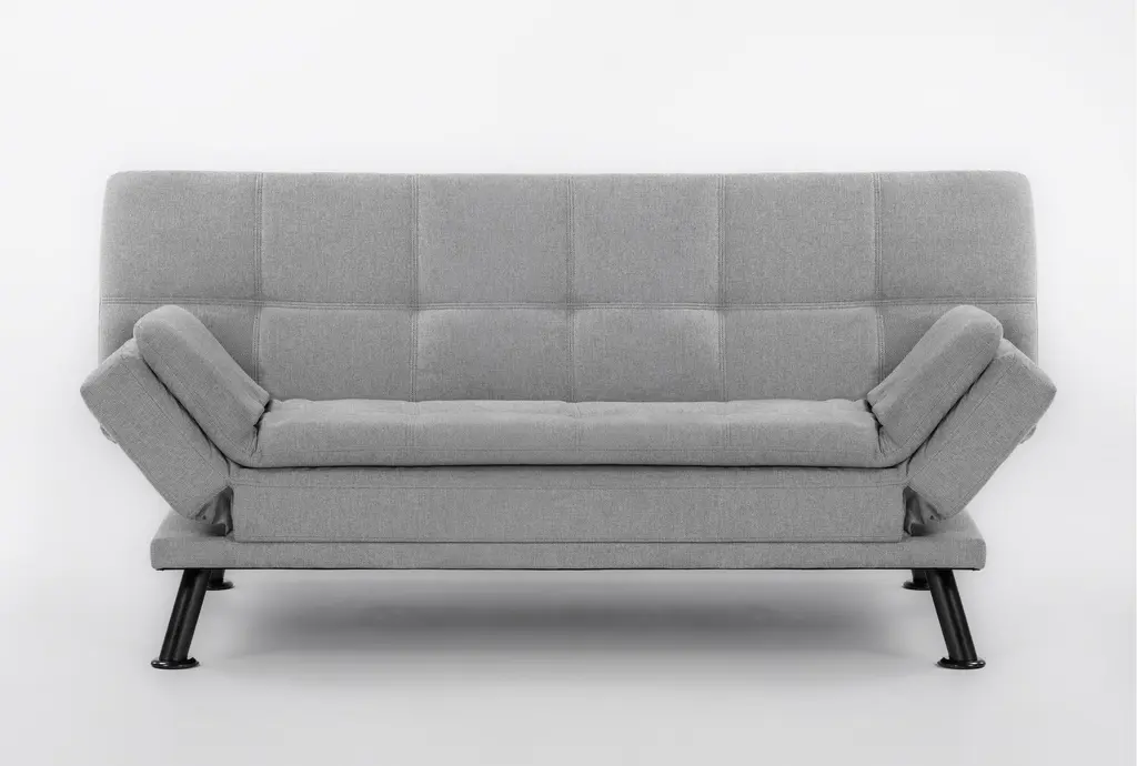 Tanner Silver Grey 74" Convertible Futon / Sofa Bed With Adjustable Armrests