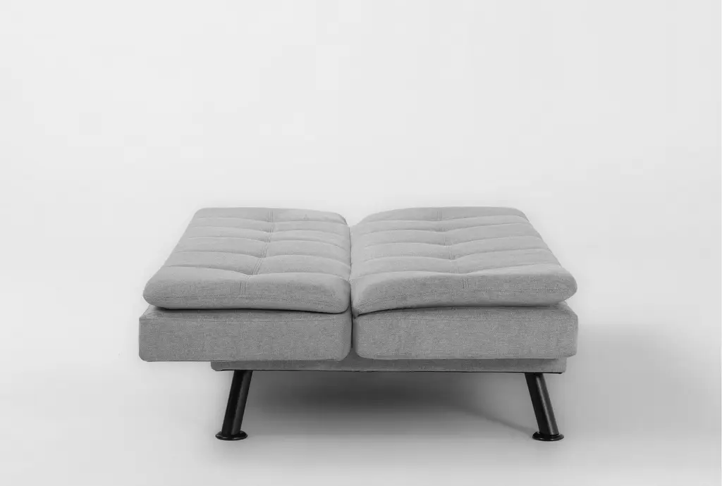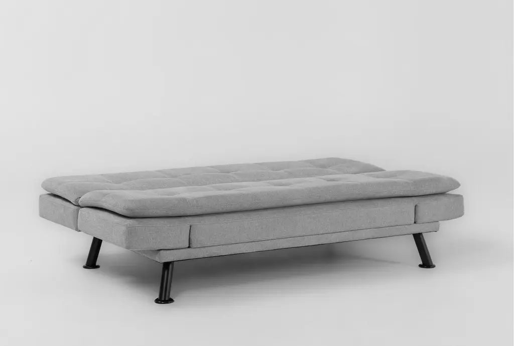 The Tanner Silver Grey 74" Convertible Futon / Sofa Bed is perfect for modern living rooms. With its adjustable armrests and sleek design, this versatile piece can easily transform from a sofa to a twin sleeper, providing both comfort and style.
