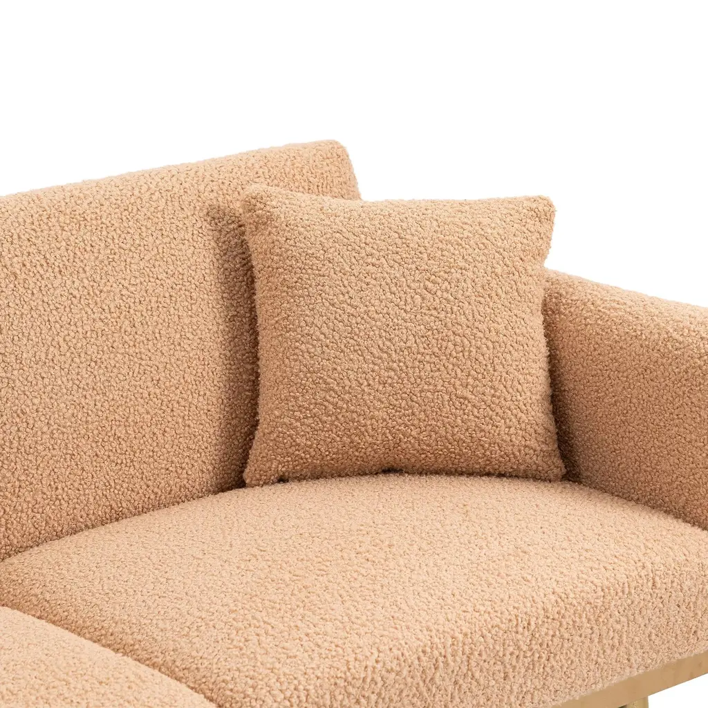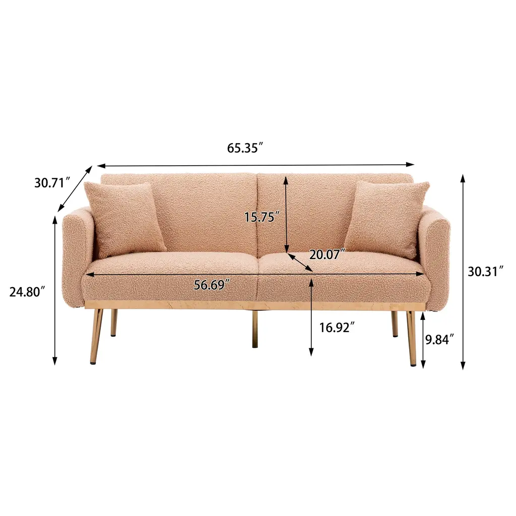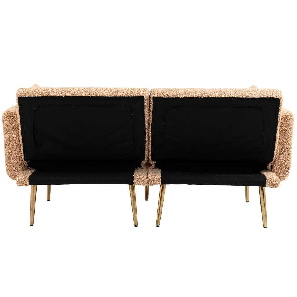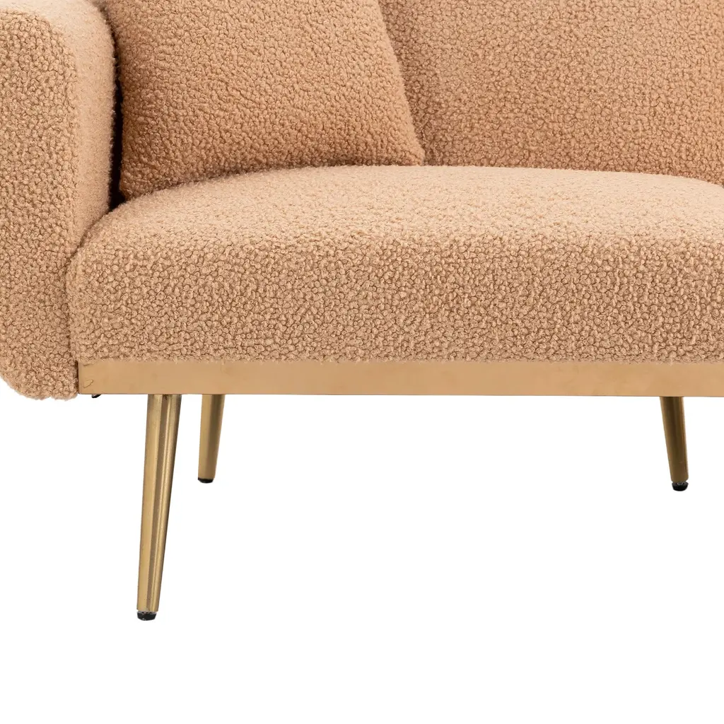 Teddy Upholstered Loveseat, Lounge Recliner Convertible Sofa Bed - Camel Teddy