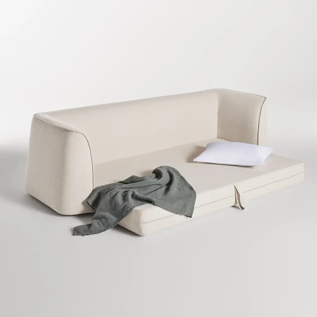 Merging curves and comfort, Thataway is hanging at the intersection of the nearly unassuming and “Whoa, what’s that?” Normal and unusual all at once the sofa’s tight seat and back provide an agreeable sit, while the sweeping arms deliver the pretty. Best part, Thataway’s hidden talent. The seat cushion flips forward to create a sleeping surface in a pinch. You are welcome.