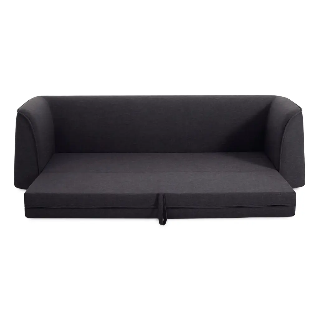 The Thataway Sleeper Sofa from Blu Dot is the perfect place to rest and recharge after a long day. Its combination of crisp curves, sweeping arms, and robust polyester and linen blend fabric make it a stylish addition to any home. With a supportive cushion of high-resiliency foam and an easily foldable seat cushion, that flips into a convenient bed, this sofa provides comfortable and versatile lounging for you and your guests. Highlights