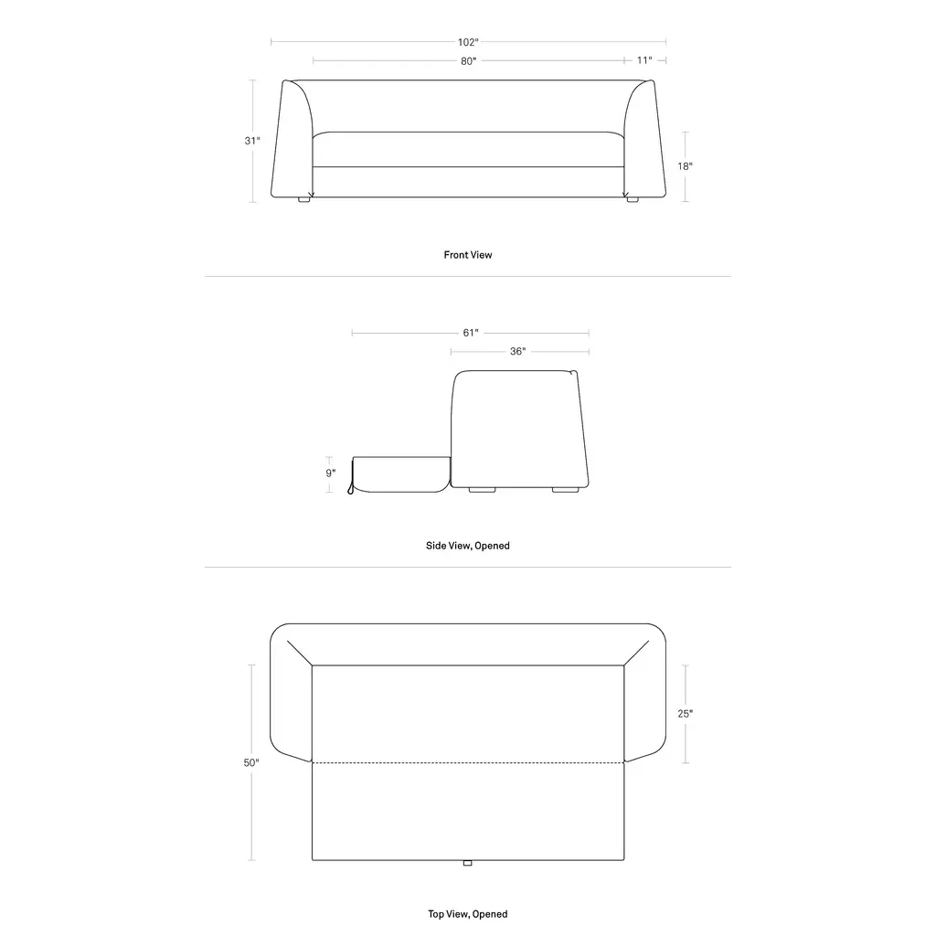 The Thataway Sleeper Sofa from Blu Dot is the perfect place to rest and recharge after a long day. Its combination of crisp curves, sweeping arms, and robust polyester and linen blend fabric make it a stylish addition to any home. With a supportive cushion of high-resiliency foam and an easily foldable seat cushion, that flips into a convenient bed, this sofa provides comfortable and versatile lounging for you and your guests. Highlights