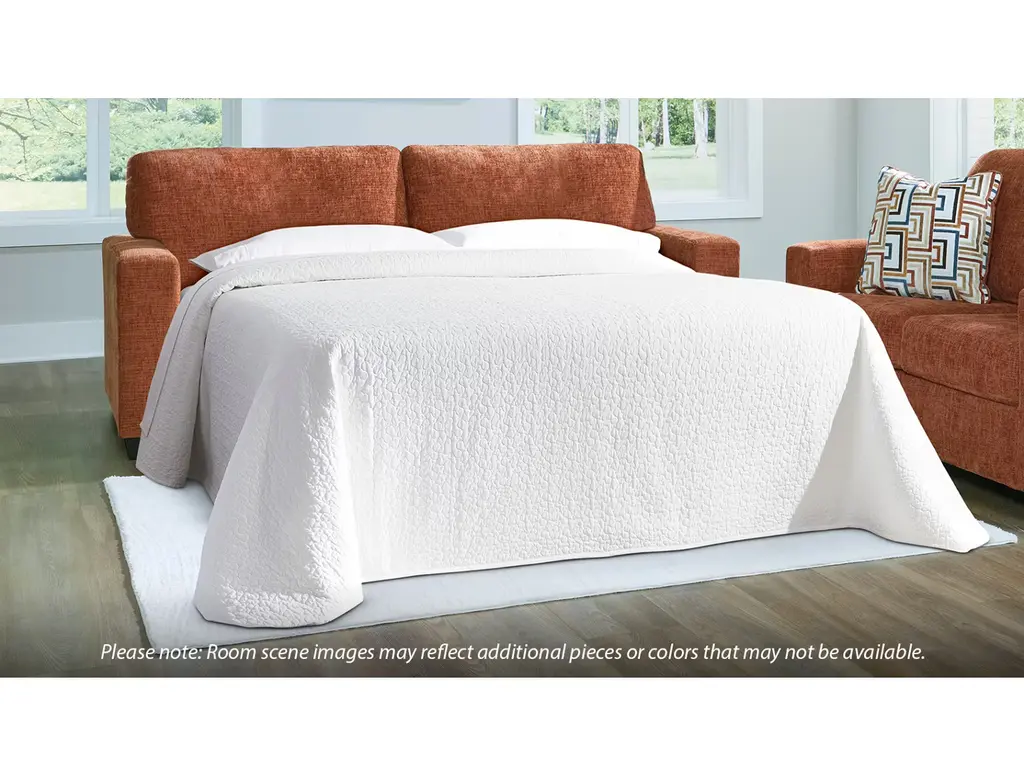 Enjoy cozy lounging and accommodate overnight guests with the Ashley Timberlake Queen Sleeper. Upholstered in softly textured fabric, this contemporary queen sleeper features cushioned backrests and seats, wide track arms, and tapered square legs. Includes two coordinating toss pillows for added comfort and style.
