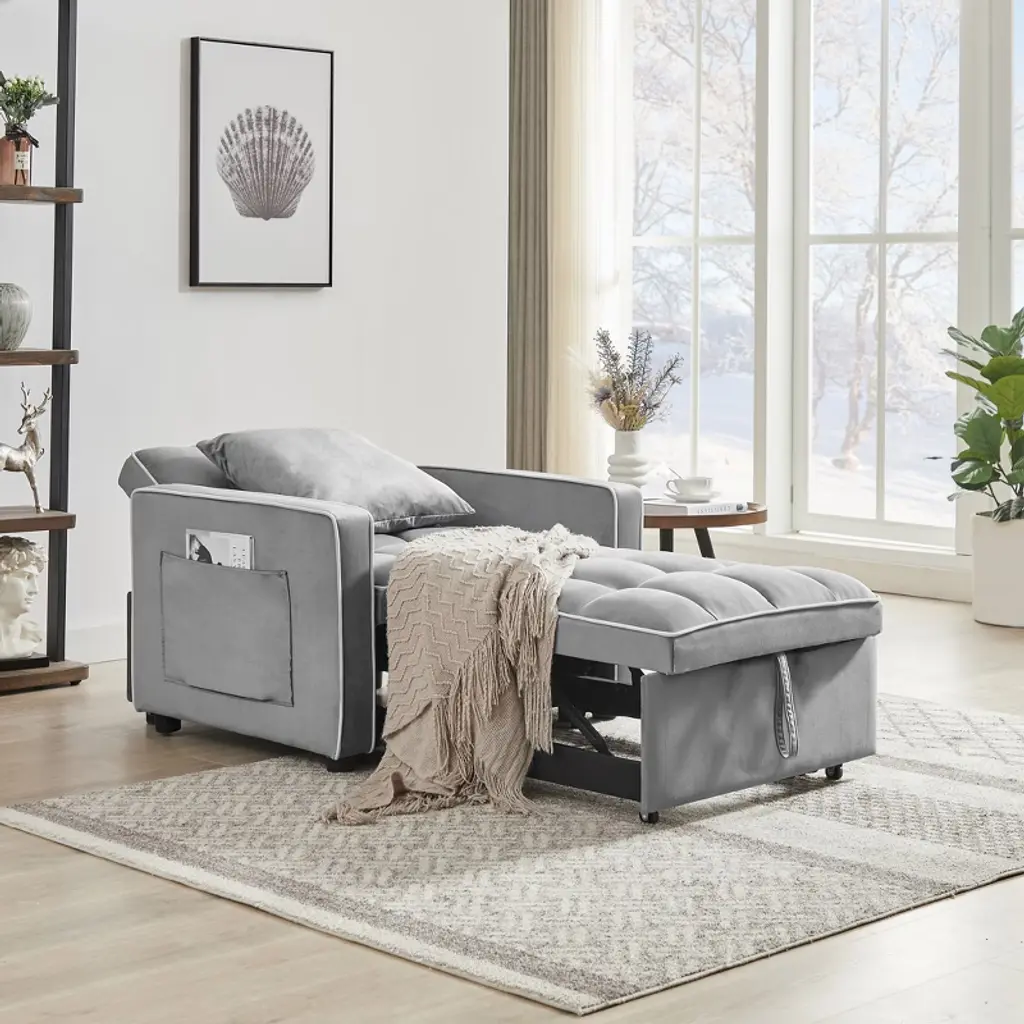Tiramisubest Three-in-one Sofa Bed Chair Folding Sofa Bed Adjustable Back Into A Sofa Recliner Single Bed Adult Modern Chair Bed Berth Grey,