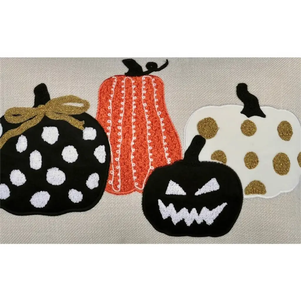 Enhance your seasonal d¨¦cor with our Embroidered Pumpkin Lumbar Throw Pillow, featuring delicate misty blue and ivory pumpkin designs on a lightweight cotton-linen blend fabric. This 14x20 inch cushion combines soft texture with rustic charm, making it ideal for autumn, Thanksgiving, or year-round farmhouse styling.