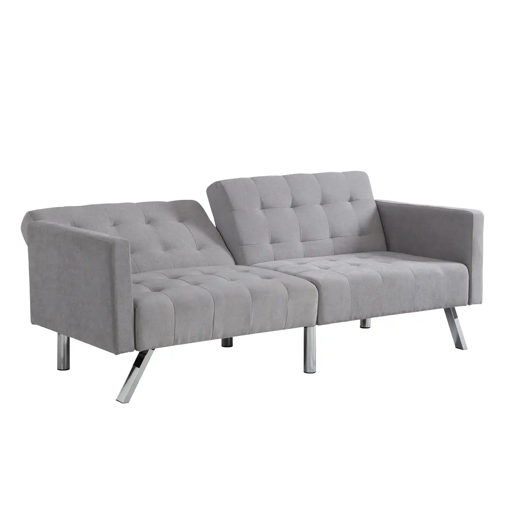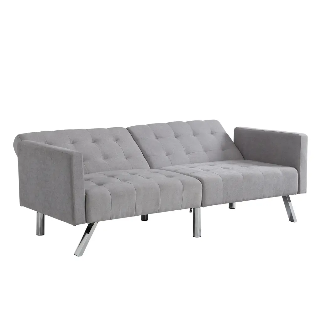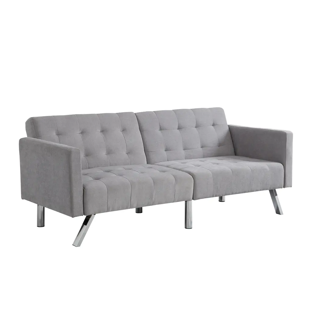 Tufted Upholstered Loveseat Convertible Sofa Bed - Light Grey