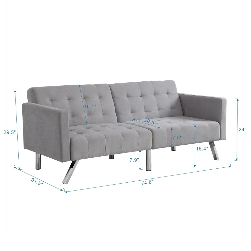 Description:Discover the perfect blend of functionality and style with our Convertible Sofa Bed. Its split-back design offers three adjustable positions, making it perfect for any activity, from lounging and reclining to sleeping. The breathable linen fabric not only looks sophisticated but also enhances comfort. This space-saving sofa bed is an excellent addition to small rooms, offices, or apartments, providing a versatile seating solution. With easy assembly and a robust structure supported by six electroplated stainless steel legs and a solid wood frame, this sofa bed combines durability with modern elegance.Quick Glance:Specifications:Product Type: LoveseatsMain Material: LinenNumber of Seats: 2 SeatersProduct DimensionsAssembled Length (in): 74.80Assembled Width (in): 31.50Assembled Height (in): 29.50Weight (lbs): 84.10