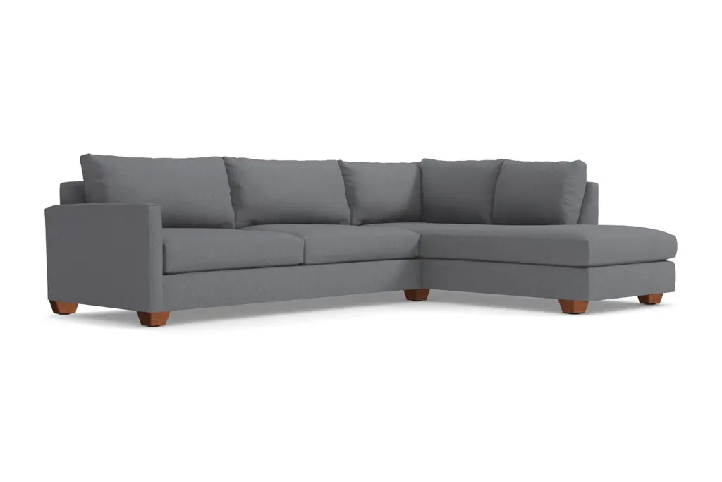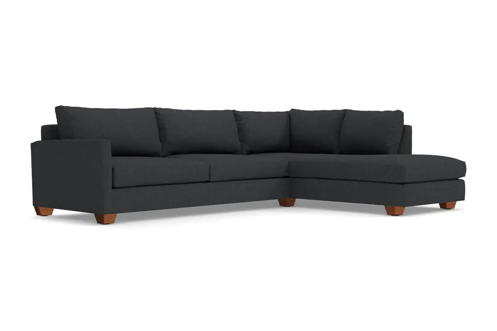 If you want to "dress to impress" then you need a Tuxedo. The same is true for your home. The Tuxedo 2 Piece Sleeper Sectional Sofa is a refined, elegant, luxurious sectional sofa that also features a Queen Size sofa bed. The high-end, contemporary design of the Tuxedo gives it a sharp, eye-catching figure that's as comfortable as it is attractive. With nice, deep seats and oversized back pillows, the Tuxedo sleeper sectional is where you'll want to curl up and drink a glass of champagne or, if it's the next morning, a mimosa. Never before has a 2 piece sleeper sofa had any business being this comfortable and glamorous. The Tuxedo 2 Piece Sleeper Sectional Sofa also features an extra-long chaise that leaves plenty of room for your favorite pets to join in the fun. And, just like all Apt2B sofas, the Tuxedo is built in our downtown Los Angeles factory (made in the USA!) and can be upholstered in any of our kid friendly and pet friendly fabric selections. With the Tuxedo Sleeper Sectional, every day is a Black Tie event.