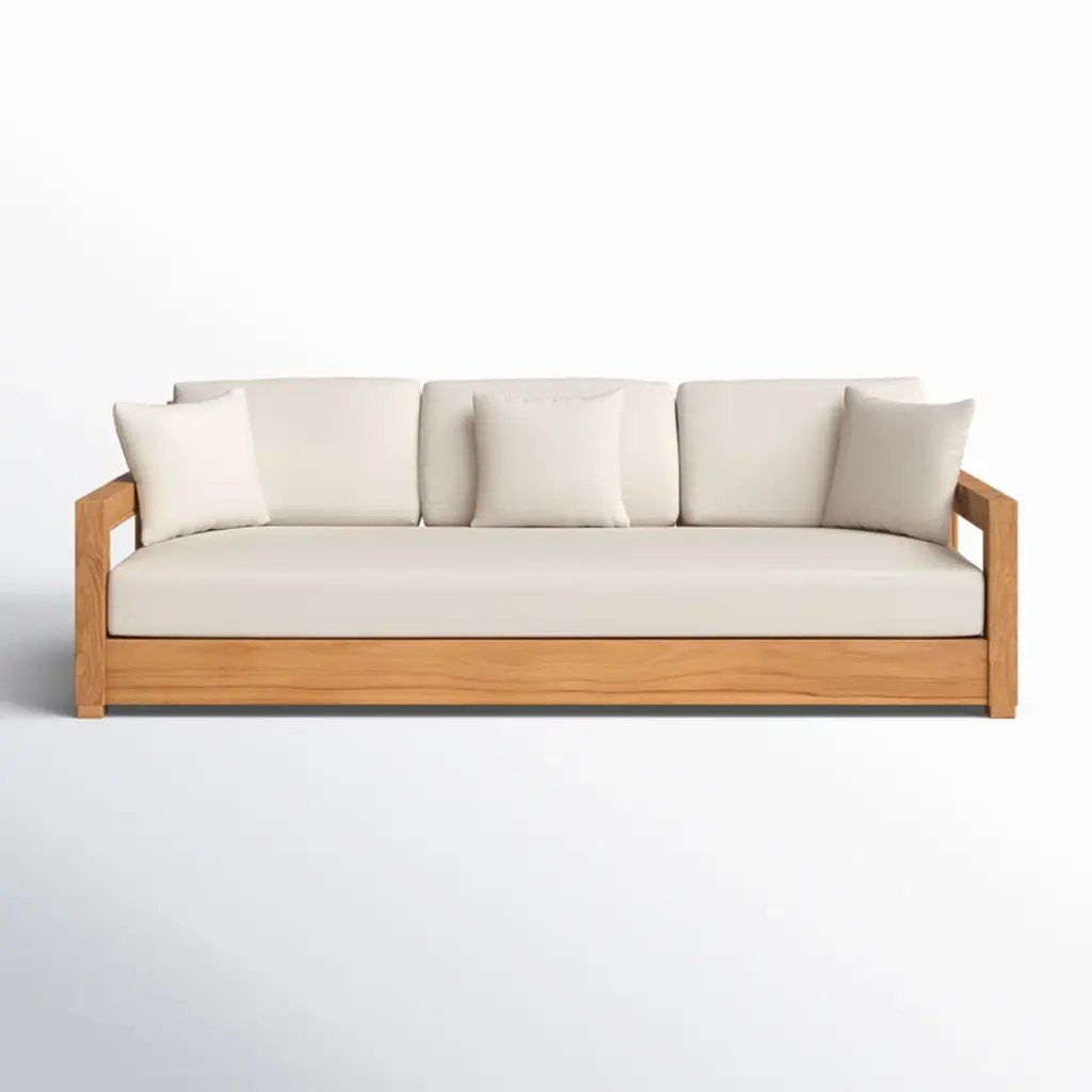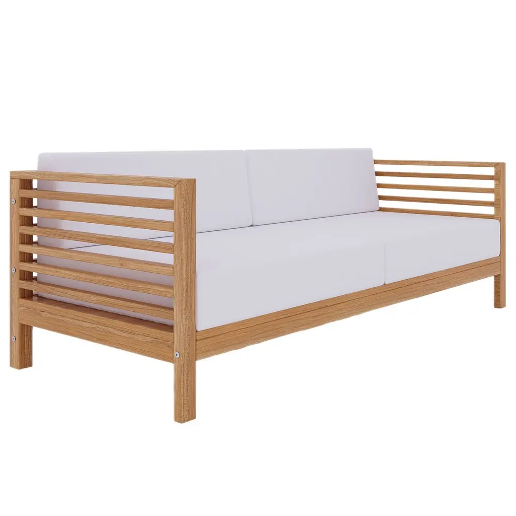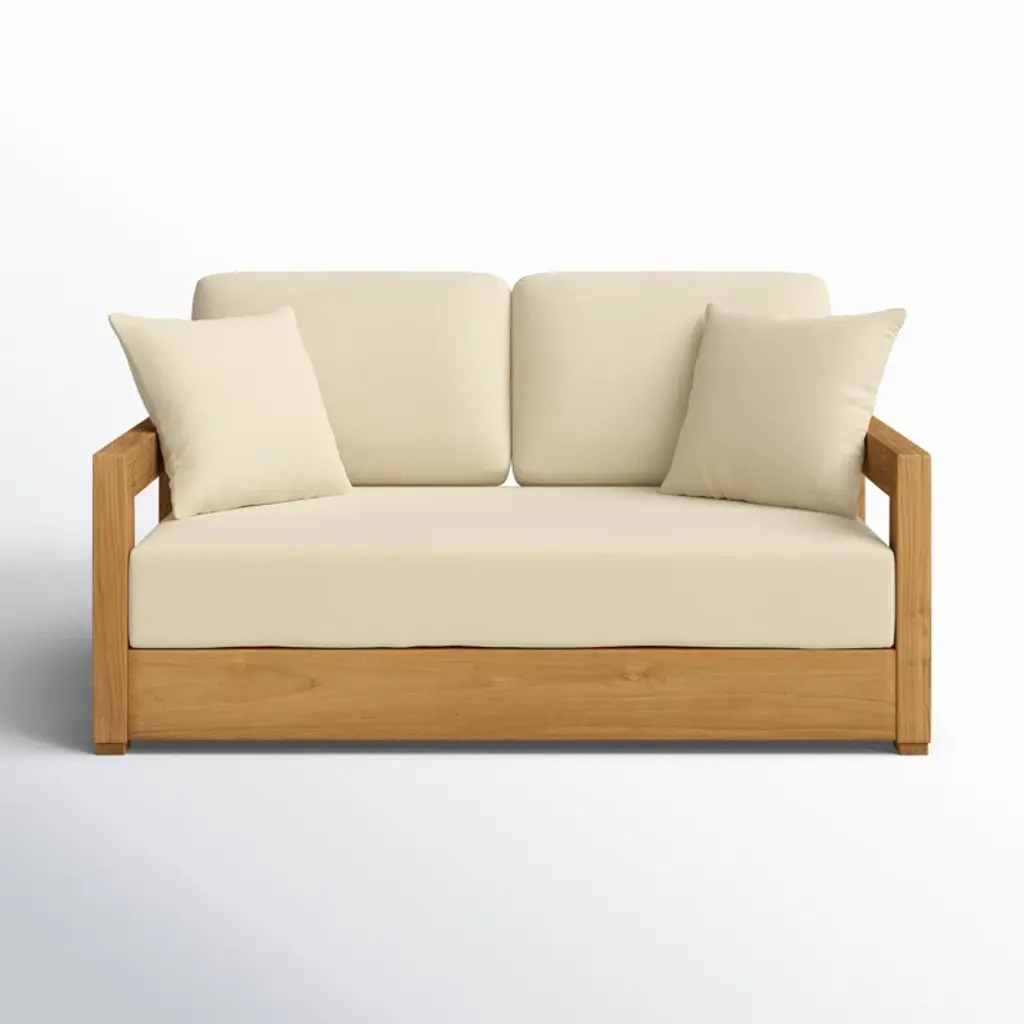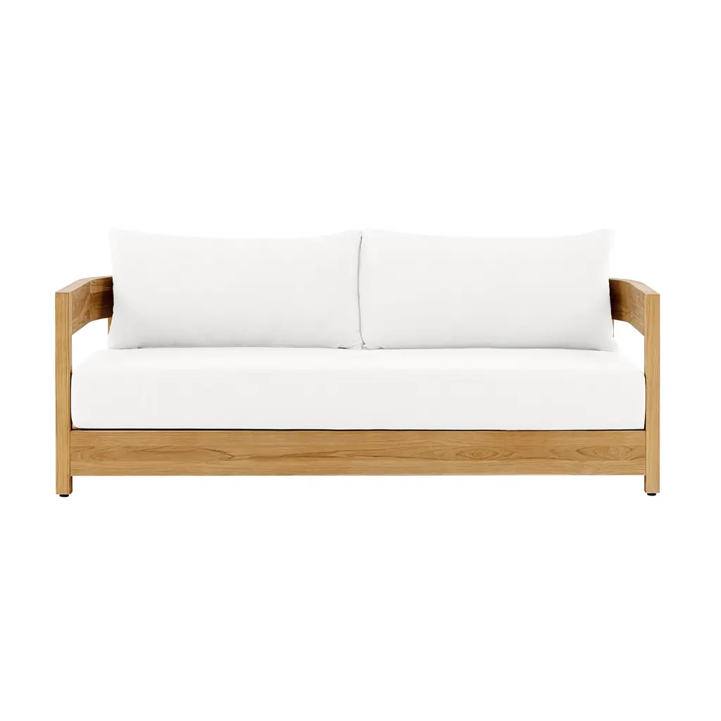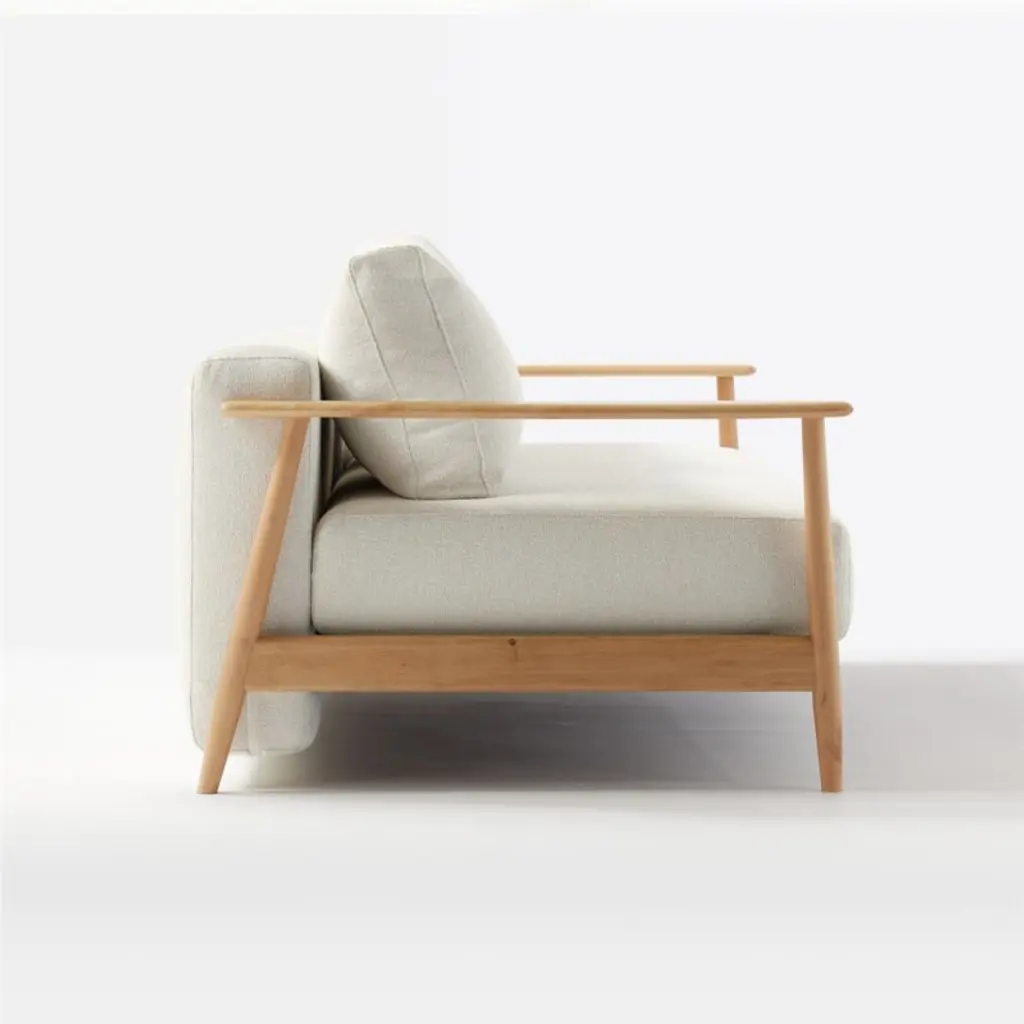 Convertible sleeper sofa gets a stylish update in luxe, ivory boucle upholstery. By day, it's a comfy lounge for TV/reading/etc. At night, flip the back all the way down and voilà…a worthy platform bed with real pocketed coil mattress innersprings that sleeps two. CB2 exclusive.