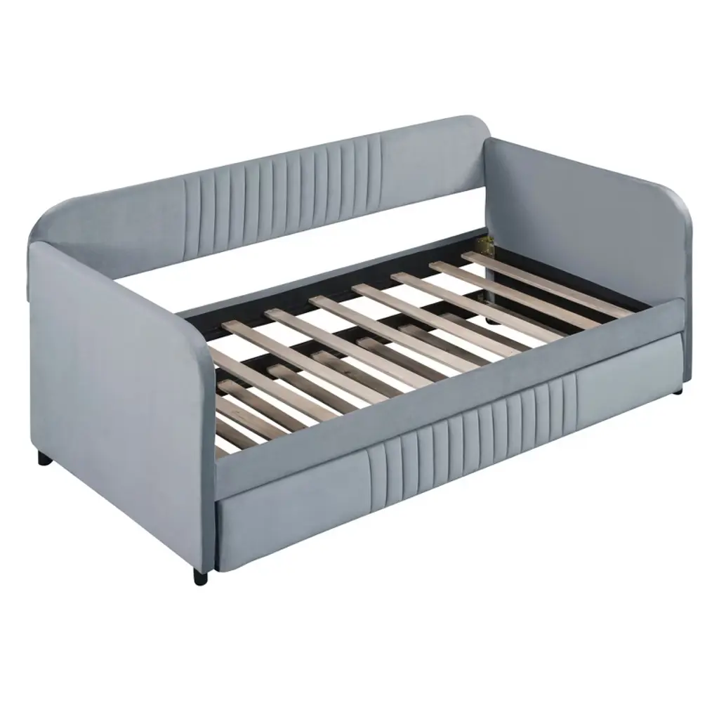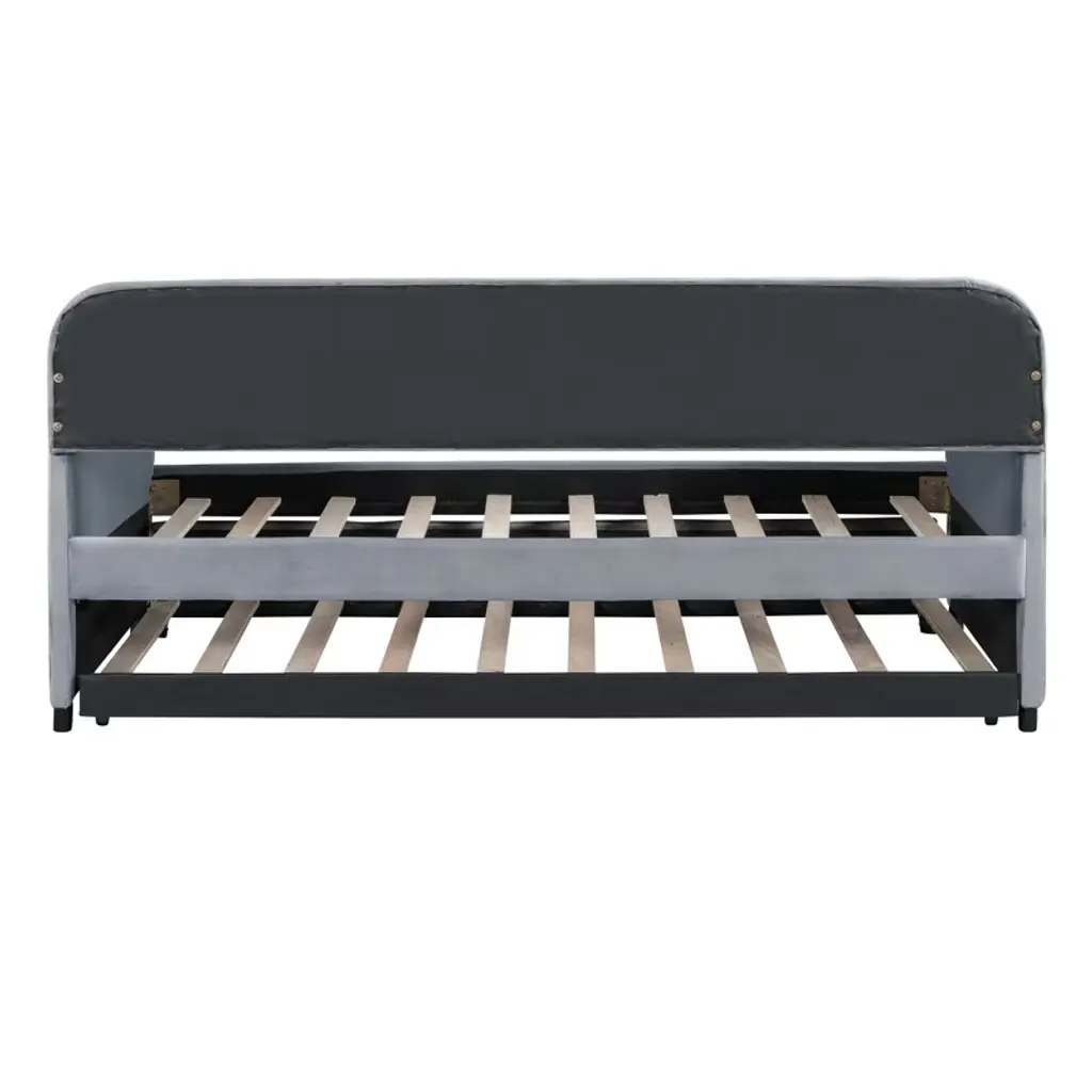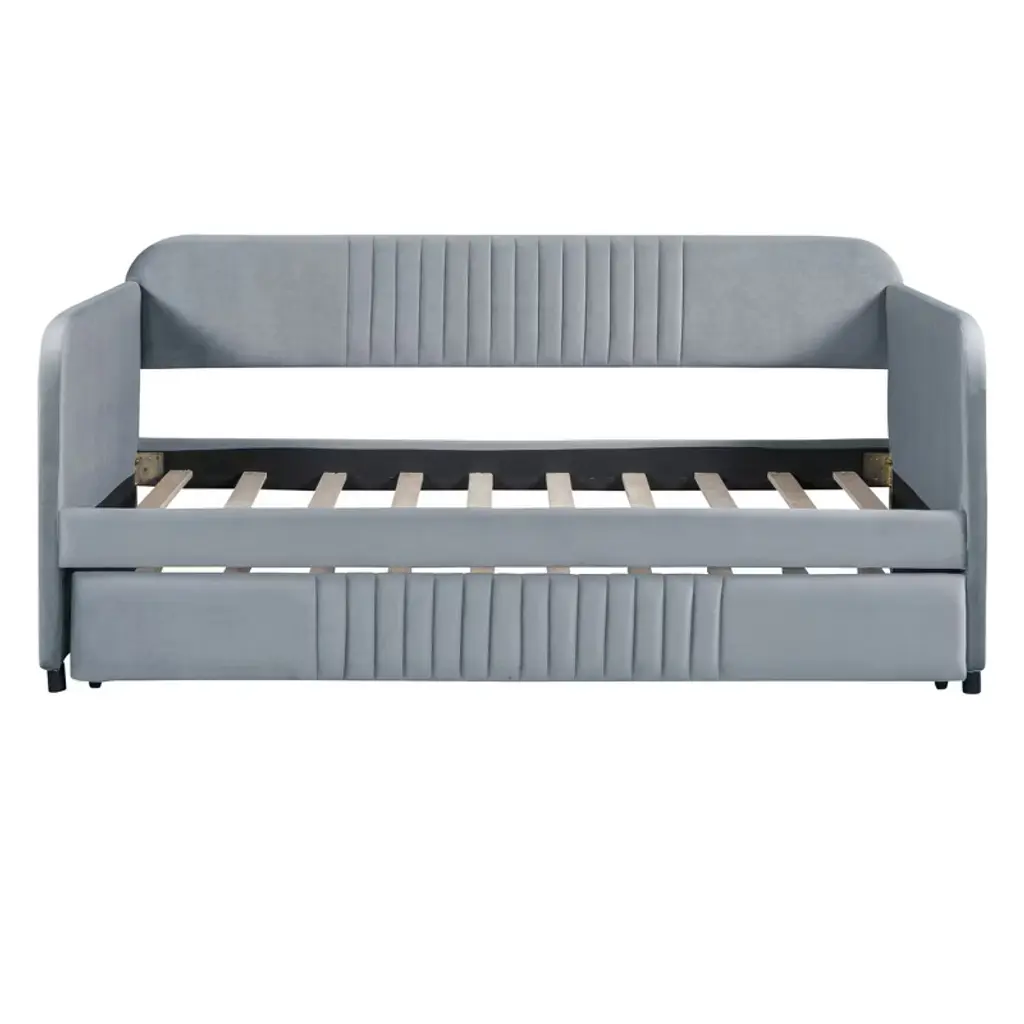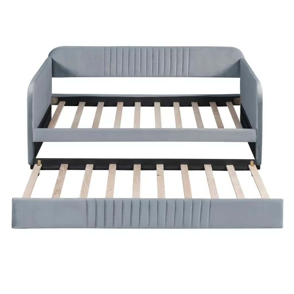 Upholstered Daybed Sofa Bed Twin Size With Trundle Bed And Wood Slat Gray