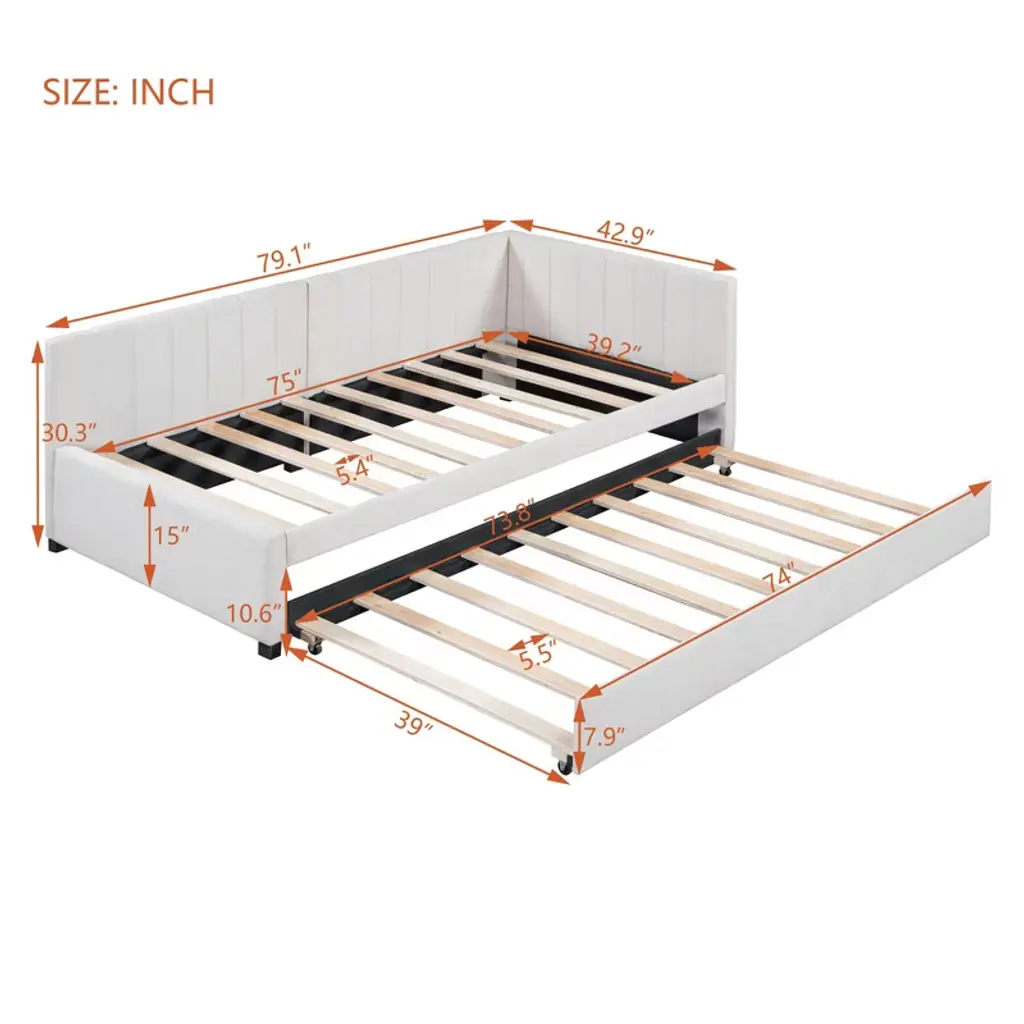Upholstered Daybed With Trundle Twin Size Sofa Bed Frame No Box Spring Needed Linen Fabric(beige)