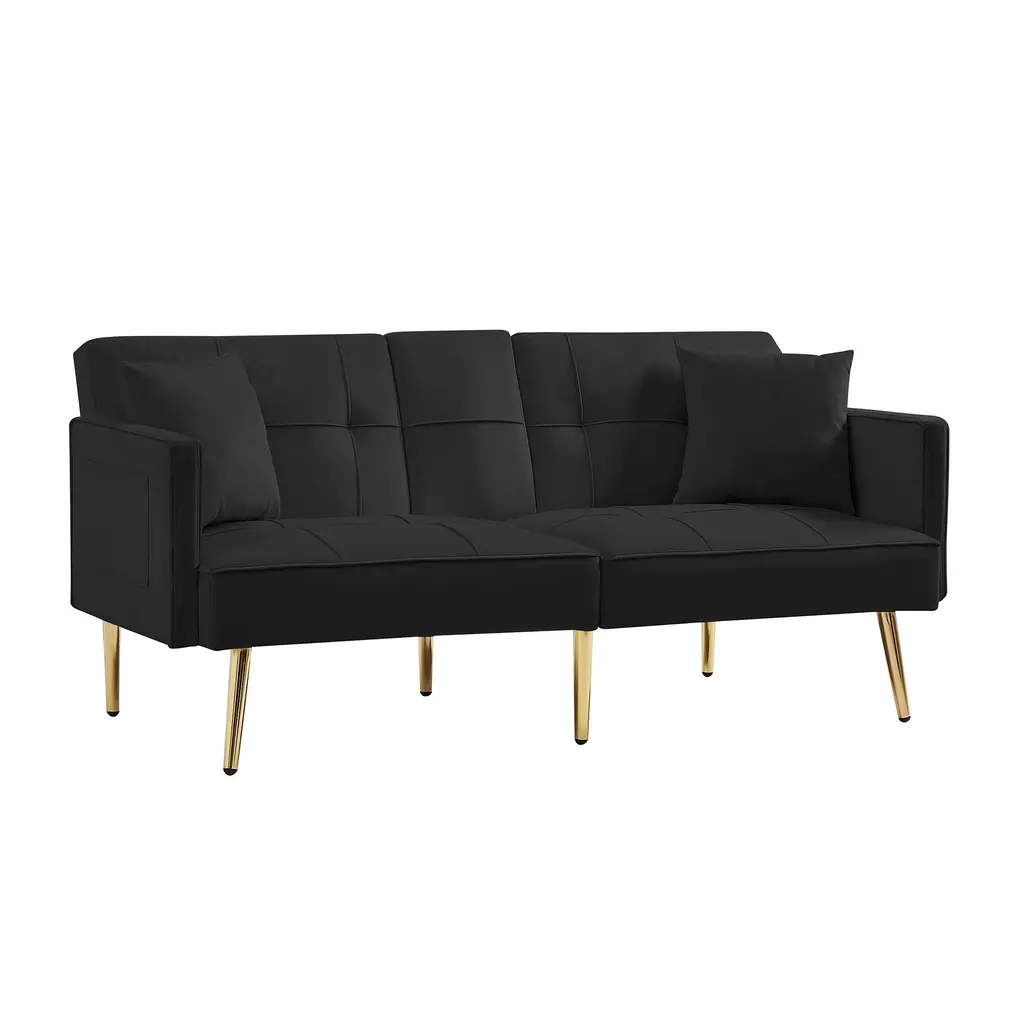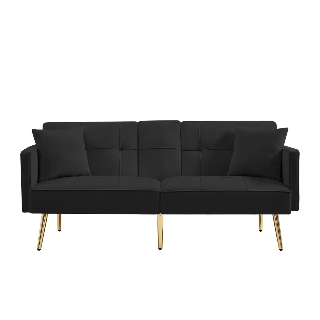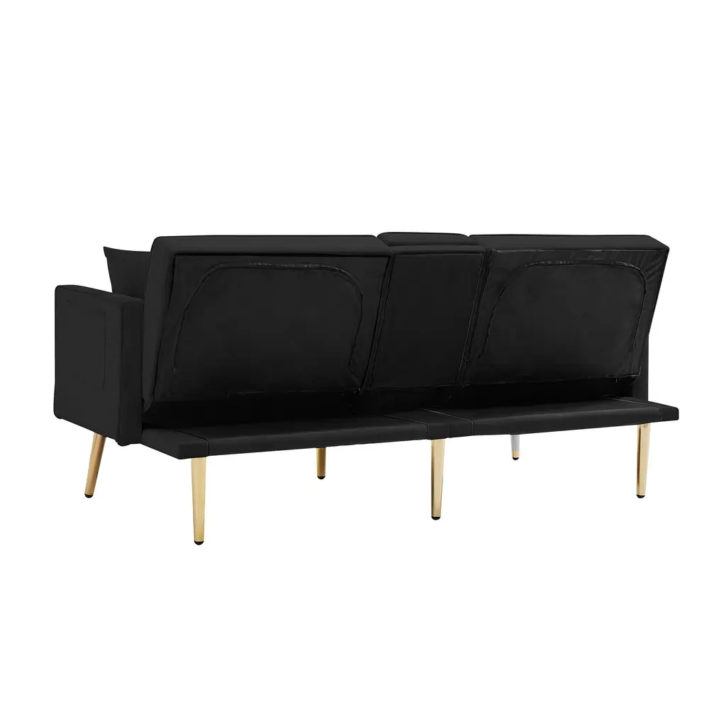 Velvet Futon Sofa Bed With Gold Metal Legs - Black