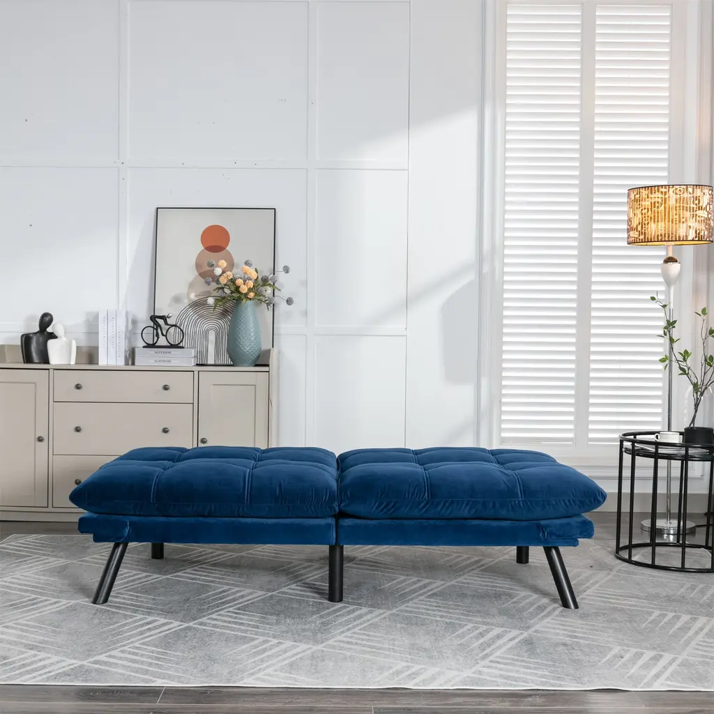 Velvet Sofa Bed With Adjustable Armrest And Backrest - Blue