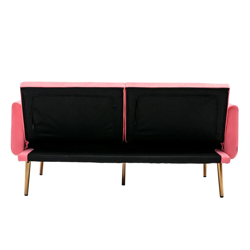 Velvet Upholstered Loveseat, Armchair Recliner Convertible Sofa Bed - Dark Pink
