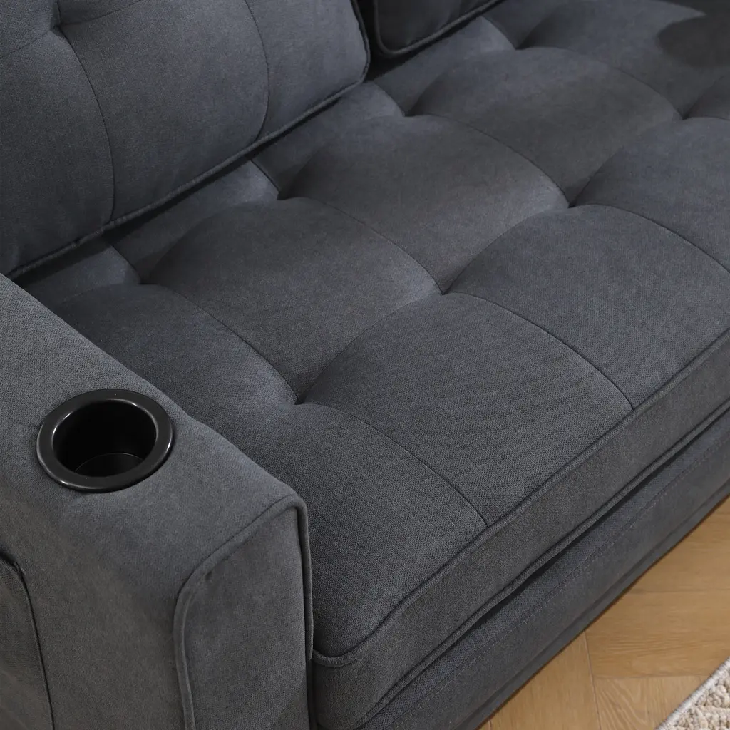 Versatile 3-In-1 Upholstered Futon Sofa Bed With Pull Out Sleeper And Multiple Functionalities - Grey-1