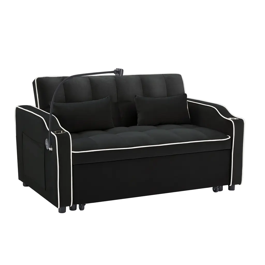 This sofa bed can be used as a loveseat, a freestanding bed, or a couch, which will provide you with a very comfortable and intimate space to relax. You can put the sofa bed in the living room, guest room, bedroom, home theater, office, etc. The multi-functional use of the sofa can meet your different needs. We will provide very detailed installation instructions, which you can follow easily to complete the assemblyEasy assembly: We will provide very detailed instructions to ensure that it is easy for everyone to installAdjustable back: This foldable futon sofa bed has an adjustable back that can be converted into a bed or recliner as neededUSB and phone stand:There is a USB charging ports and swivel phone which allowing you to charge your devices and release your hands, let you enjoy watching movies,This sofa bed also comes with 2 soft pillows.Dimensions: Sofa Chair: 30.7 inches (H) x 33 inches (D) x 54.7 inches (W) Bed: 18.2 inches (H) x 46.8 inches (D) x 70.6 inches (W) Net weight: 105 pounds Gross weight: 117 pounds