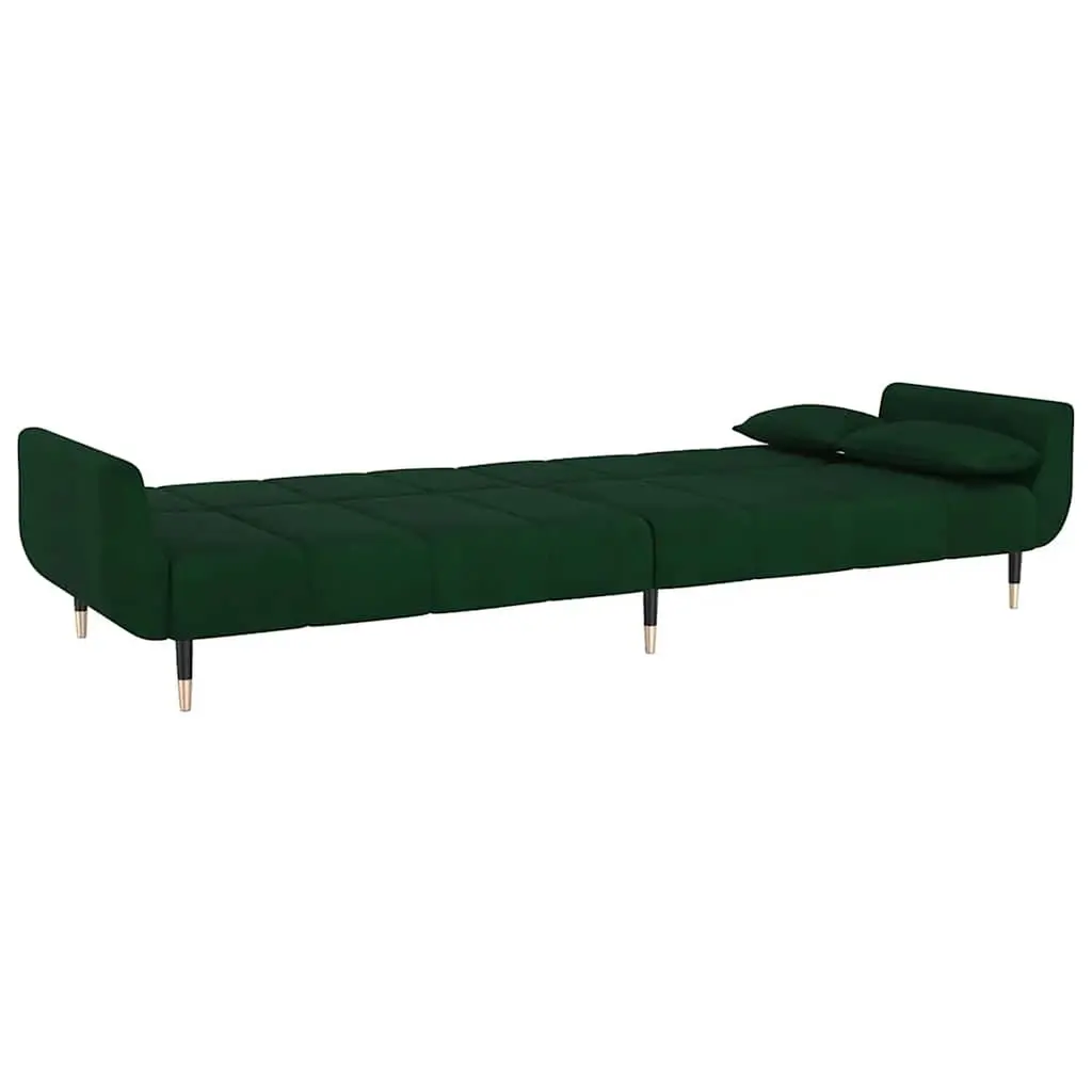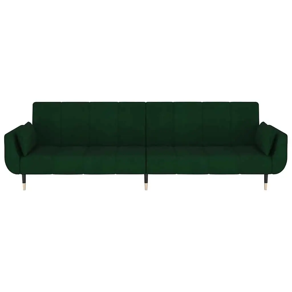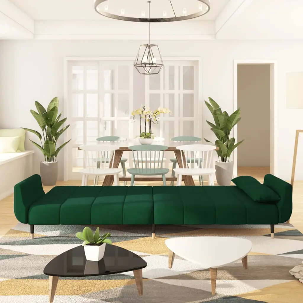 This Dark Green Velvet 2-Seater Sofa Bed is a stylish solution for your seating and sleeping needs, effortlessly blending comfort with flexibility. Perfect for modern apartments, it has a plush velvet touch, an inviting color, and clean lines that really enhance your living space while serving as a practical option for guests. Soft velvet material provides a plush feel and boosts comfort. Convertible design allows for easy switching between a sofa and a bed. Compact size works great in apartments and smaller areas. Comes with two stylish pillows for added support and flair. Sturdy wood and metal frame ensures long-lasting use.