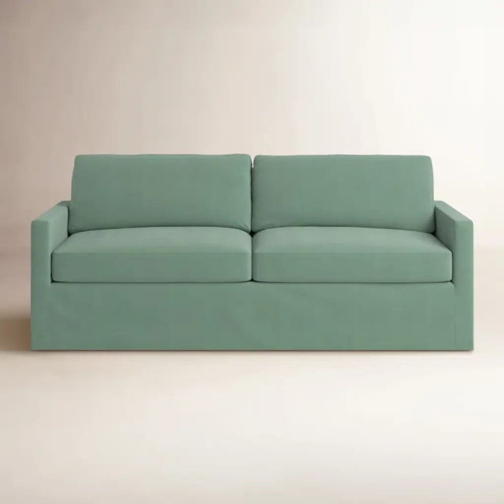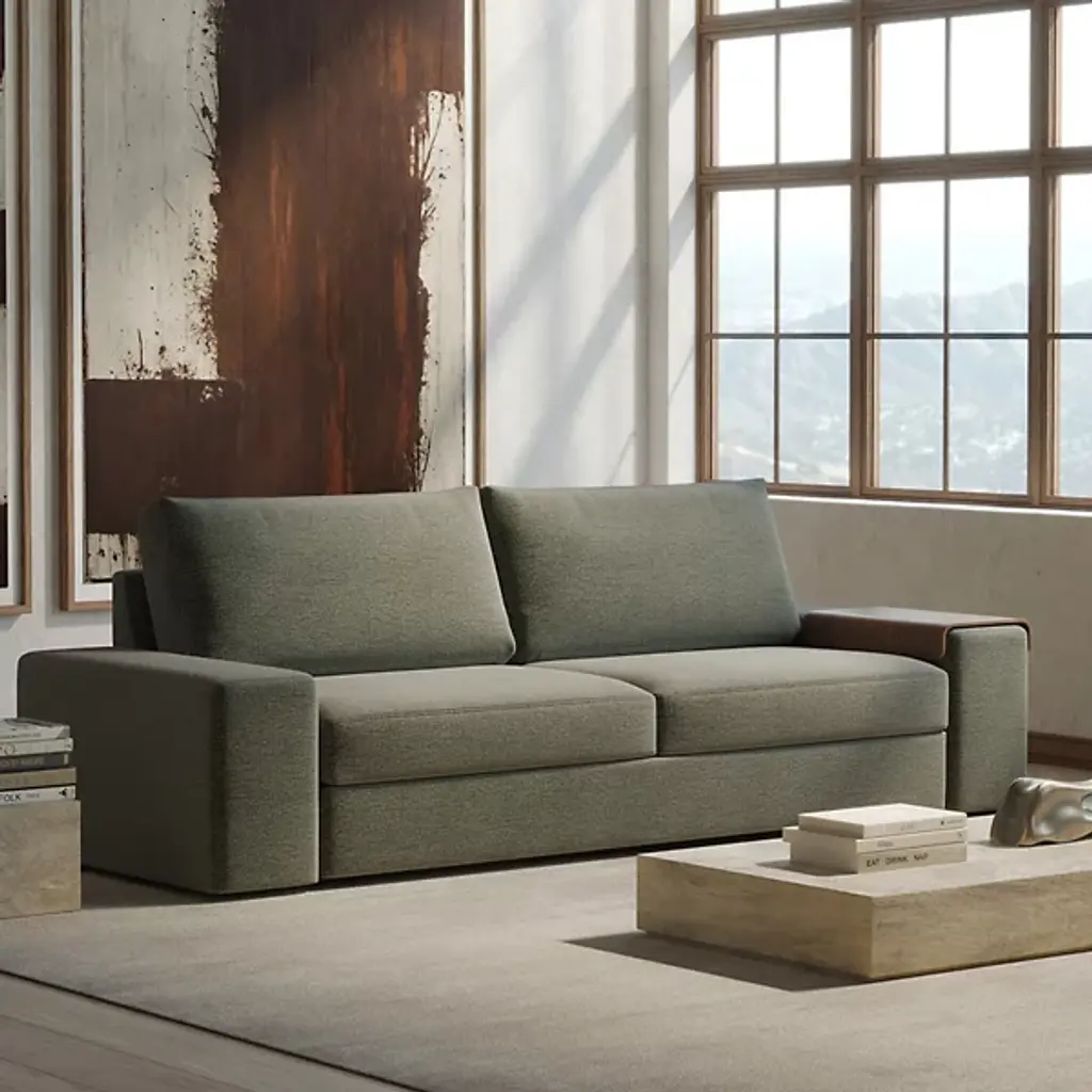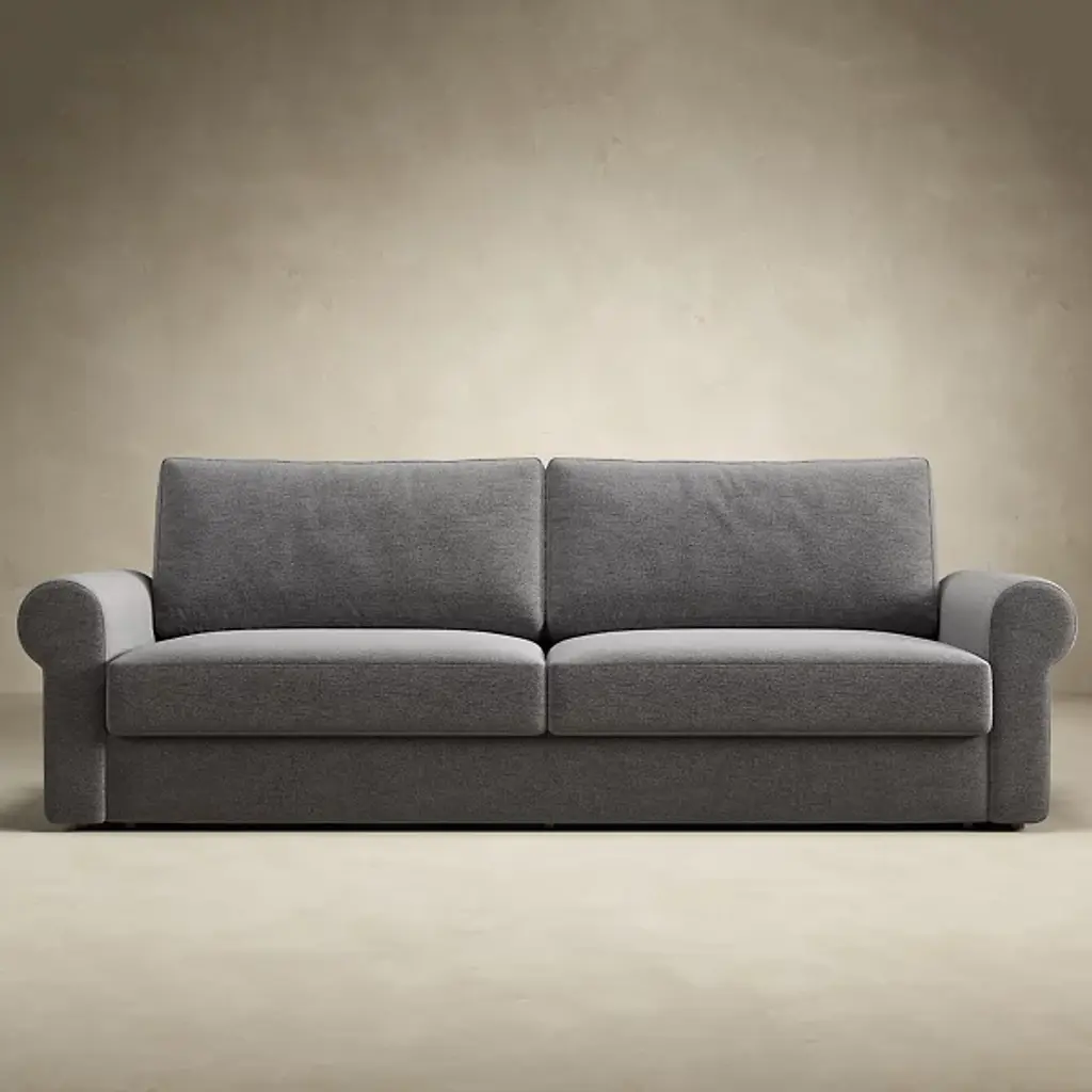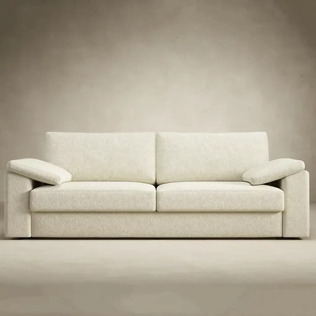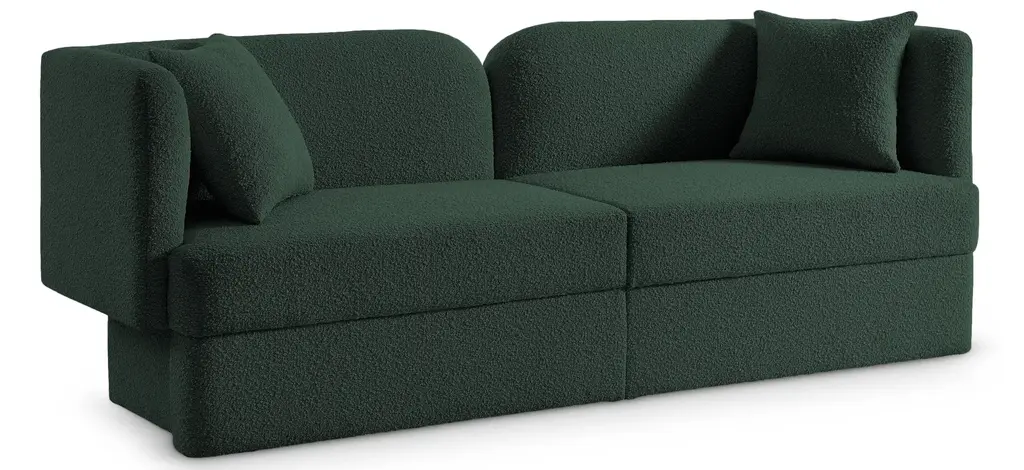A multi-function creation complete with automatically folding legs, the Vilander Sofa Bed from Innovation Living provides smooth Contemporary character. A Per Weiss design made in Denmark, its matte black steel frame is strong and supportive, able to shift easily from a three-seat sofa to a full-sized bed or lounger. Equipped with double-spring upholstery, it embeds no-zag and pocket springs within plush foam. The polyester and acrylic upholstery blend sheathes cushions and padding in a final element of comfort.