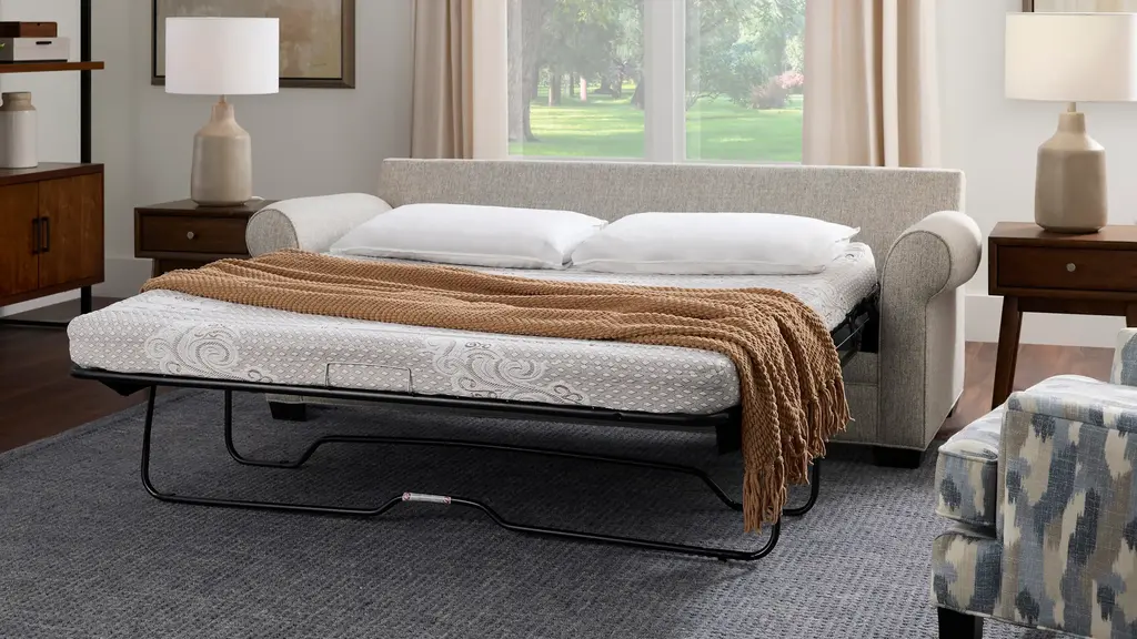 Grace your living room with the classic comfort and timeless style of the Wellsley sleeper sofa. You simply can't go wrong with the gently rolled arms, tailored piping, and plush loose cushions for a relaxed yet refined feel. The Wellsley blends traditional charm with everyday ease and, when you have guests or need some extra sleeping space, it opens to a comfy memory foam mattress that's sure to please.