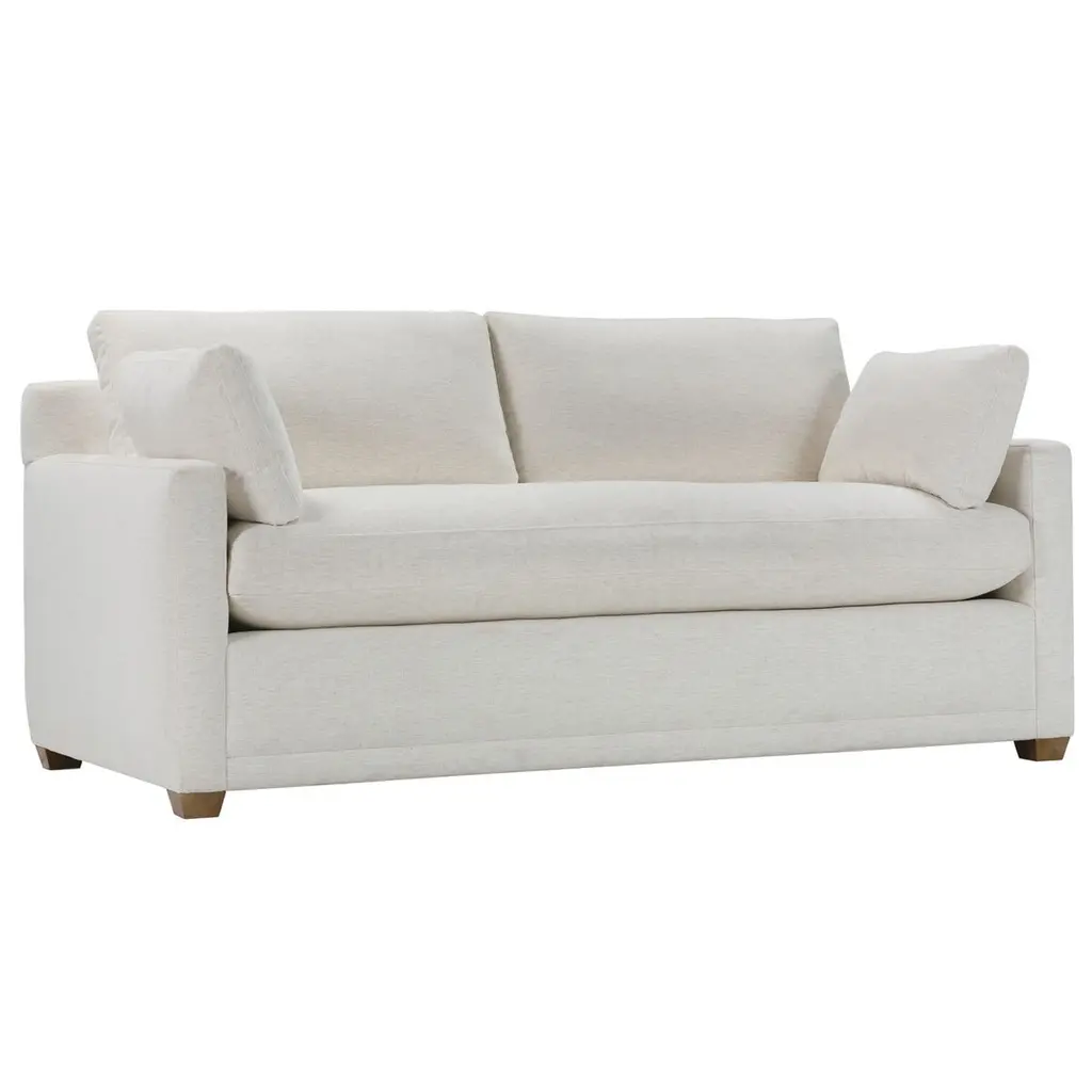 If the dictionary had a picture of the quintessential classic sofa, the Whitley Slipcover Queen Sleeper Sofa would be it. Two loose back cushions and seat cushions atop a simple streamlined frame work in a myriad of spaces, while the fabric adds to the simplistic ease of this style. Designed for casual comfort with a youthful, updated style, this sofa offers more than just style. A beautifully concealed sleeper offers so much more than meets the eye. The feel of the material is like chenille, adding to the overall luxurious experience. Includes two bolster pillows (non-welted).