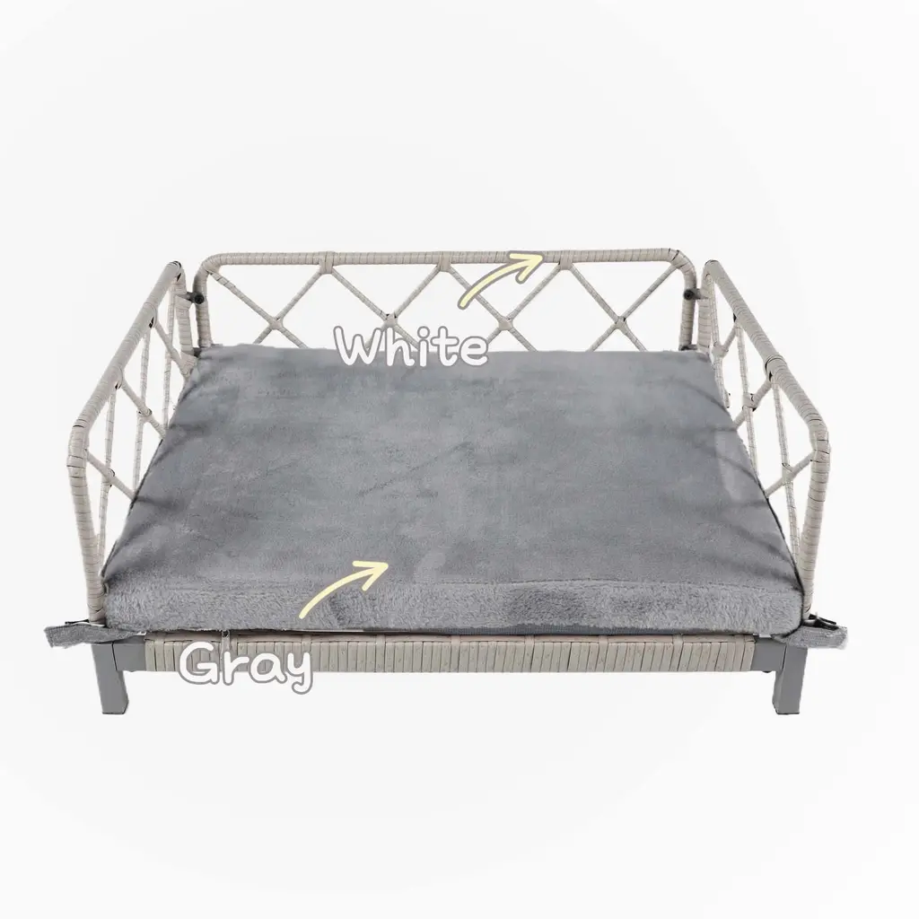 【Product Features】 ★The wicker dog bed is crafted of all-weather handwoven PE rattan, which is waterproof and abrasion-resistant while promoting air circulation. ★Moreover, it comes with a soft cushion, offering your ry friend a cozy place to rest and relax. ★It adopts anti-slip footpads and an elevated bottom, providing stability and security for your ry friend. ★Whether placed in your living room, patio, garden, or balcony, this wicker pet bed is the perfect resting spot for your beloved pets. 【Description】 [The 'hand woven' pet bed] The wicker look Rattan pet bed is woven with pliable palm stems of Rattan. Each string of the Rattan is coated with rich UV-inhibitors to minimize corrosion and flaking due to outdoor use. [Easy to maintain cushion] The zip can be easily unzipped. Machine washable. The combination of foam padding and fleece provides maximum comfort for your pet. [Elevated pet bed] This stylish, slightly elevated design ensures even support for the pet bed. The bed is durable and can be ideal for both indoor and outdoor use. [Adhesive band] It holds the mat better and prevents it from falling off. [Easy operation] Equipped with tools, easy to assemble, easy for one person. 【Keep it looking its best】 1.Fabric niture Care;Dust regularly. Clean gently with a clean, slightly damp cloth. Professional cleaning is recommended. 2.Wood niture Care:We recommend dusting frequently with a clean, soft, dry, lint-free cloth. Clean the surface by rubbing in the direction of the grain and wipe dry. 3.Avoid direct sunlight. 4.Avoid the use of all chemicals, household cleaners, abrasives, or cleaners that contain lemon, vinegar, or other acids that may damage the finish. 5.Do not place hot appliances, such as curling irons and hot hair dryers directly on the countertop. 6.Spot clean using distilled water and water-based cleaning agents, foam or mild water-free cleaning solvents. 7.Always test a small inconspicuous area first. 8.Hardware may loosen over time; periodically check to make sure all connections are tight 【Notes】 1.Size Notice:Manual measurement has been used, there may be some reasonable errort, thanks for your understanding. 2.Color Notice:Due to factors such as display equipment and shooting environment, the color of the item may be slightly different from the picture, which is a normal phenomenon, please refer to the actual item 3.Assembly Notice:Please read assemble manual in advance. Please do not over-tighten nuts, as this may cause distortion or breakage. 4.It is recommended to put a layer of foam or soft cushion on the floor when installing to avoid scratching the floor. 5.If the item has any defects, damage or missing parts, please contact us with pictures or videos so that we can understand your needs and help you quickly, and always remember to retain its original packaging to ensure any return requests. We will try our best to solve any problems you may have. 6.If you receive the wrong product, please attach the product picture, the infographic of the outer package and the picture containing SKUs, so that we can verify and quickly deal with it for you